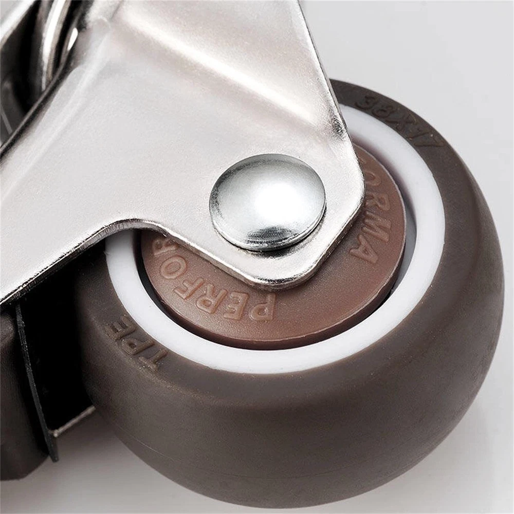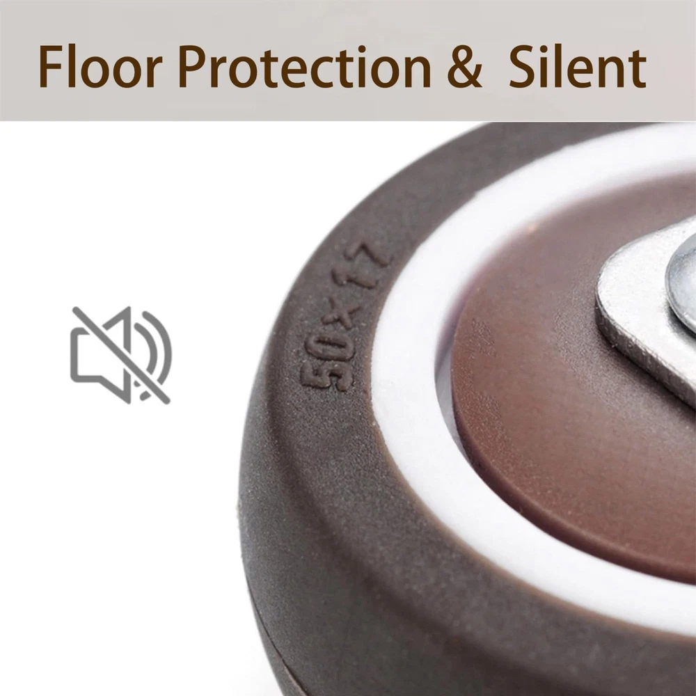 The casters are made of rubber, which can easily slide safely on your expensive hardwood floors, tiles, vinyl, marble, carpets and any type of floor. Not suitable for outdoor use on rough roads Suitable for replacing movable furniture such as cribs, trolleys, kitchen cabinets, storage racks, coffee tables, work tables, etc. Rotate 360 degrees. Rotating, smooth, quiet and robust Capacity: 50 Lbs each-200 Lbs total Wheel diameter: 2 inches Wheel material: rubber Total height: 2.58 inches Including: 4 X 2 inch casters with brake and 20 screws HIGH-QUALITY MATERIALS: thermoplastic elastomer , built-in bearing, does not hurt the floor, the movement is silent. SIZE: L-shaped bracket About 1.5"×1"/ 38×25mm(L×W), mounting height is about 2.58"/65mm, the diameter of wheel is 2"/50mm. CARRYING CAPACITY:Heavy Duty Ball Bearings, 50 lbs per wheel bearing, 200 lbs (pack of 4). UNIVERSAL ROTATION:360 degree swivel casters with brake lock ,Glides on easily without scratches or noise. EASY TO INSTALL L- SIDE MOUNT CASTERS:Wide range of applications, Brake casters for small equipment and small space furniture, including coffee tables, plant racks, bookshelves, shoe boxes, toy boxes, shopping carts.