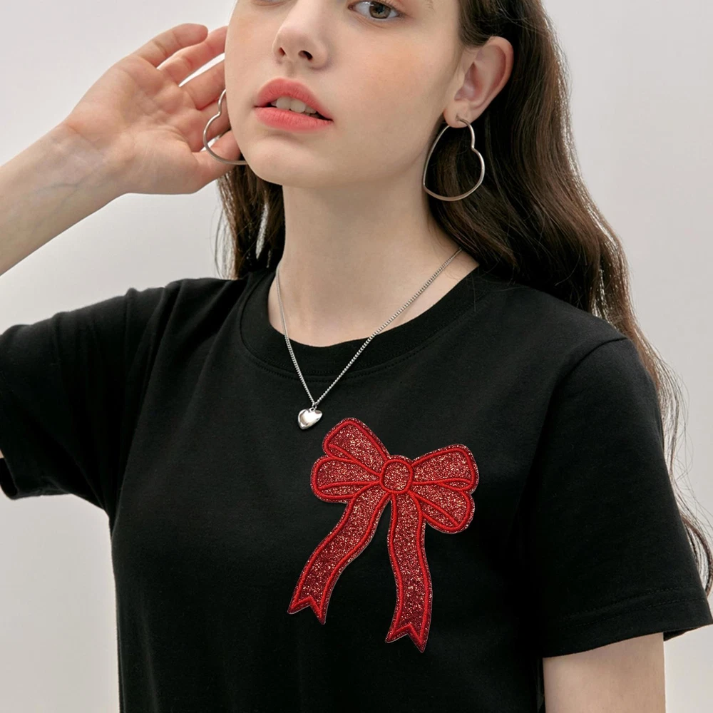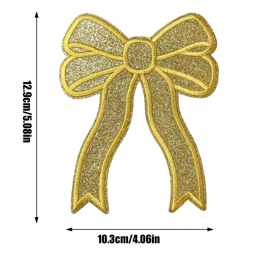Bullet Points: Trendy Accessory: Our iron on bow patch is a versatile solution for enhancing your apparel with ease. With its effortless application, it's perfect for both quick repairs and decorative enhancements, making it suitable for any style-conscious individual Eye-Catching Design: Get that extra charm with iron-on bow patches. Apply on your clothing and backpacks for a cute and stylish touch. The sparkling sequins and shiny finish will make you shine and stand out among the crowd Reinvigorate Your Fabric: Our iron-on bow patch adds a touch of brilliance to your fabric projects. Make your crafts stand out with a shimmering and elegant finish that's sure to turn heads Wide Applications: Perfect for adding a chic touch to sweatshirts, jeans, jackets, bags, socks, shoes, and more, this iron-on bow patch ensures your items stand out with elegance Convenient to Use: Add charm and personality to any outfit with our iron-on bow patch. Whether you want to show off your side or give an old piece of clothing life, this patch can be simply ironed on or sewn on for high durability and convenience Add a touch of style to your clothing and accessories with our bow embroidered patch. Specification: Product size: about 12.9x10.3cm/5.08x4.06 inches Product material: cloth Pack List: Iron on bow patch*2