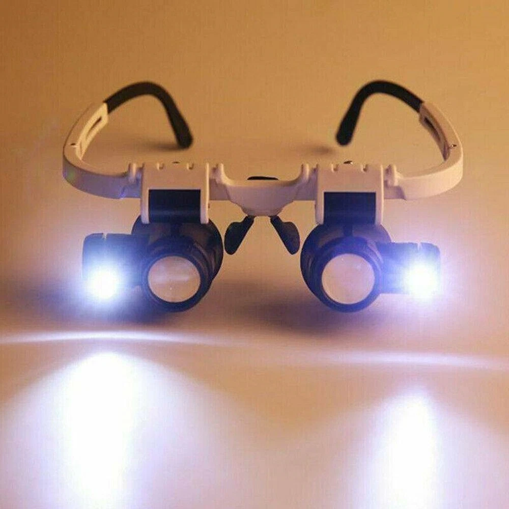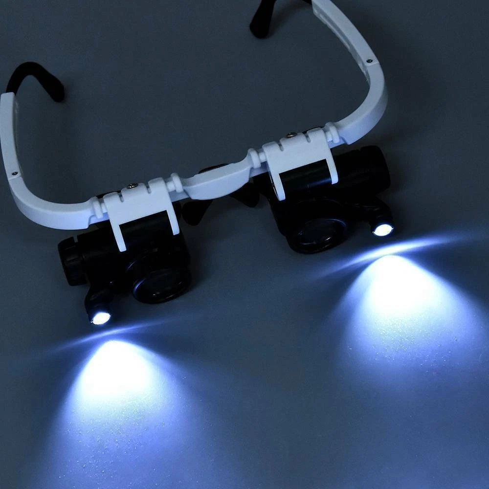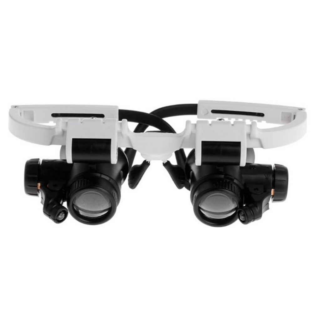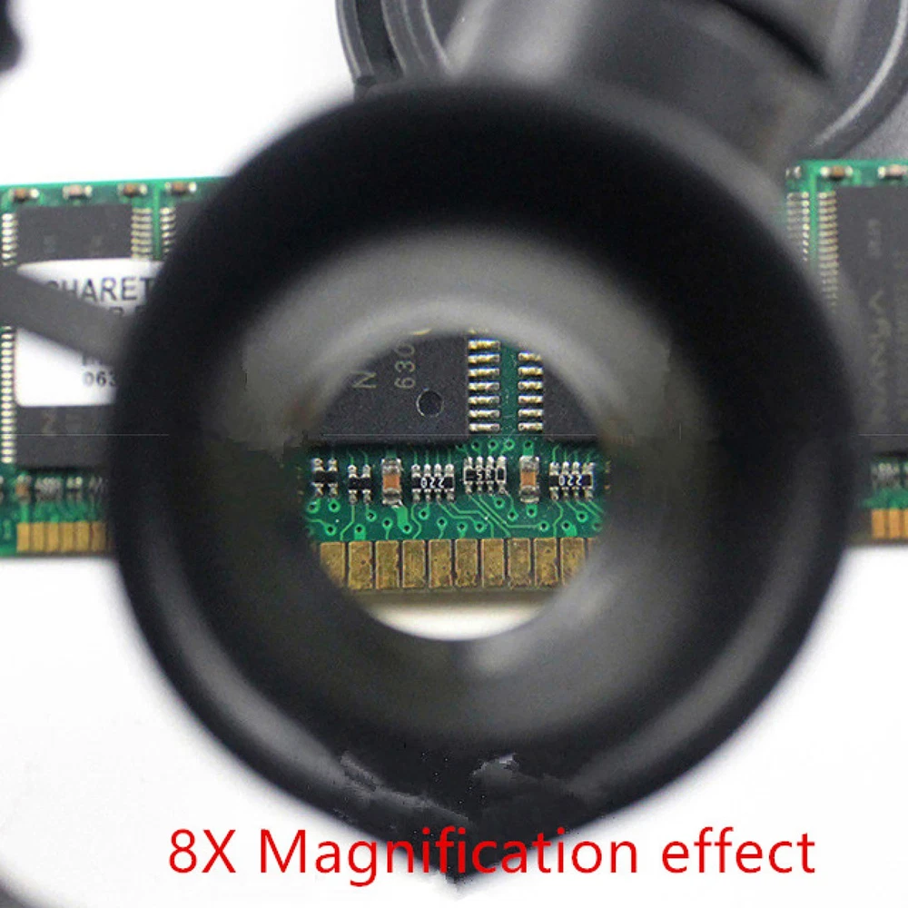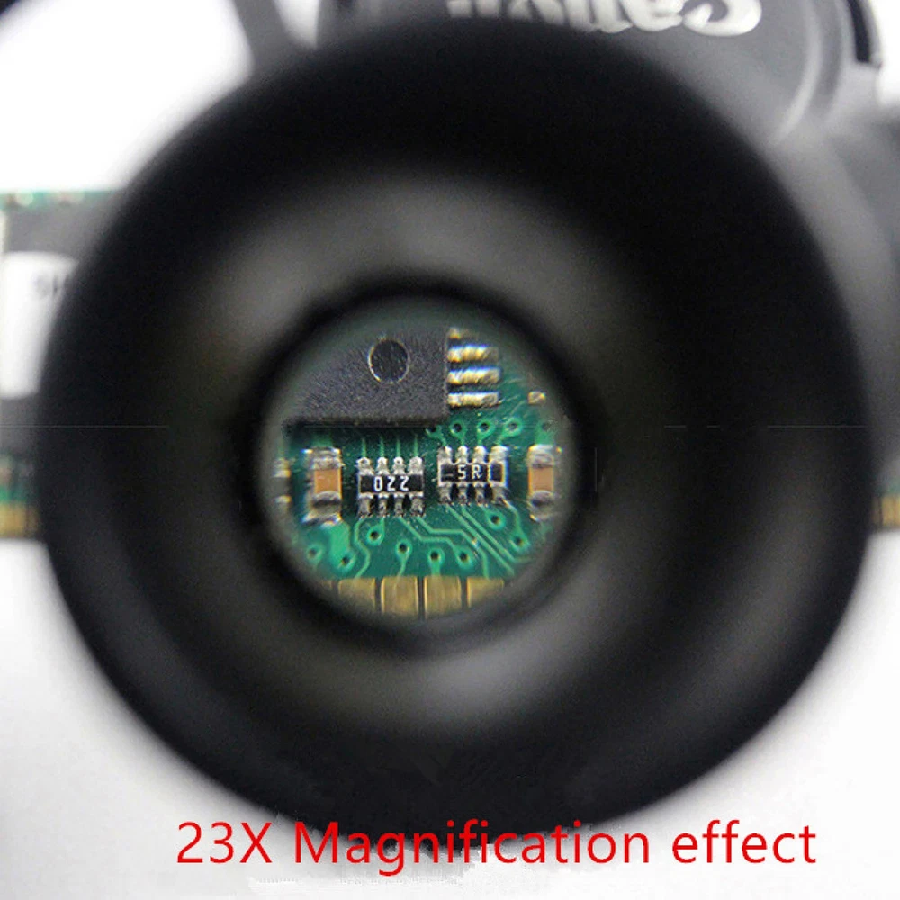 2 LED 8X 15X 23X Adjustable Lens Jewelry Watch Repair Magnifier Head Eye Loupe