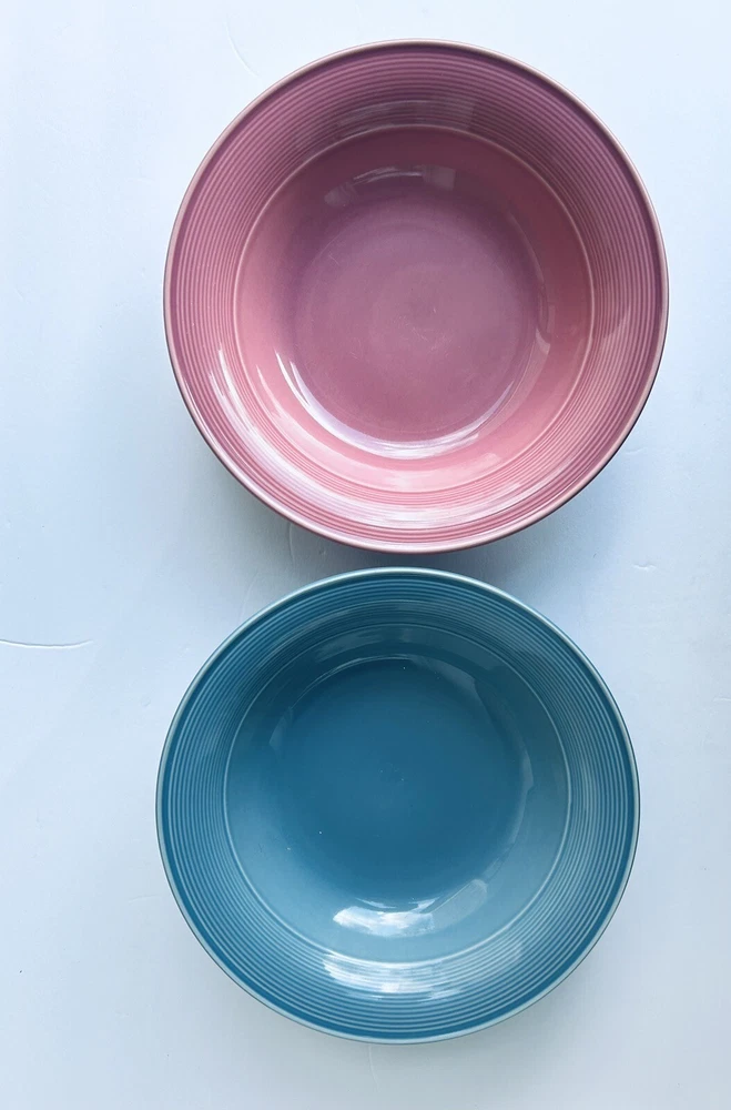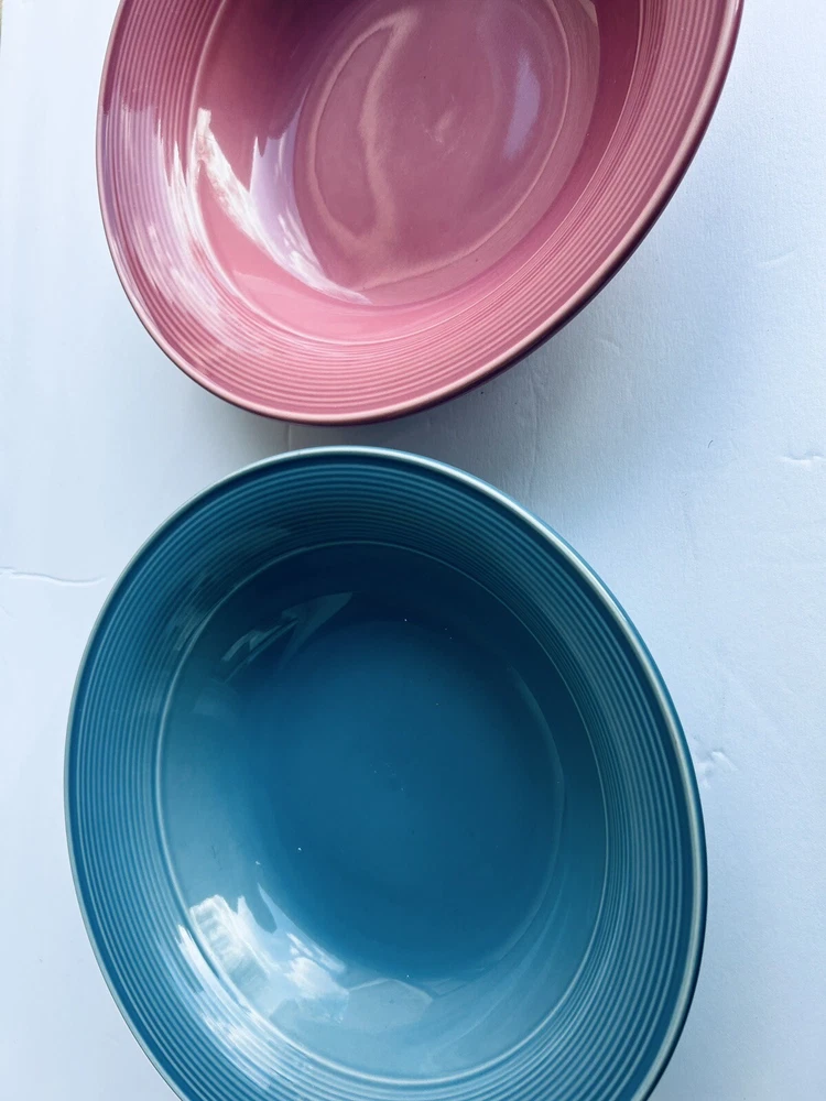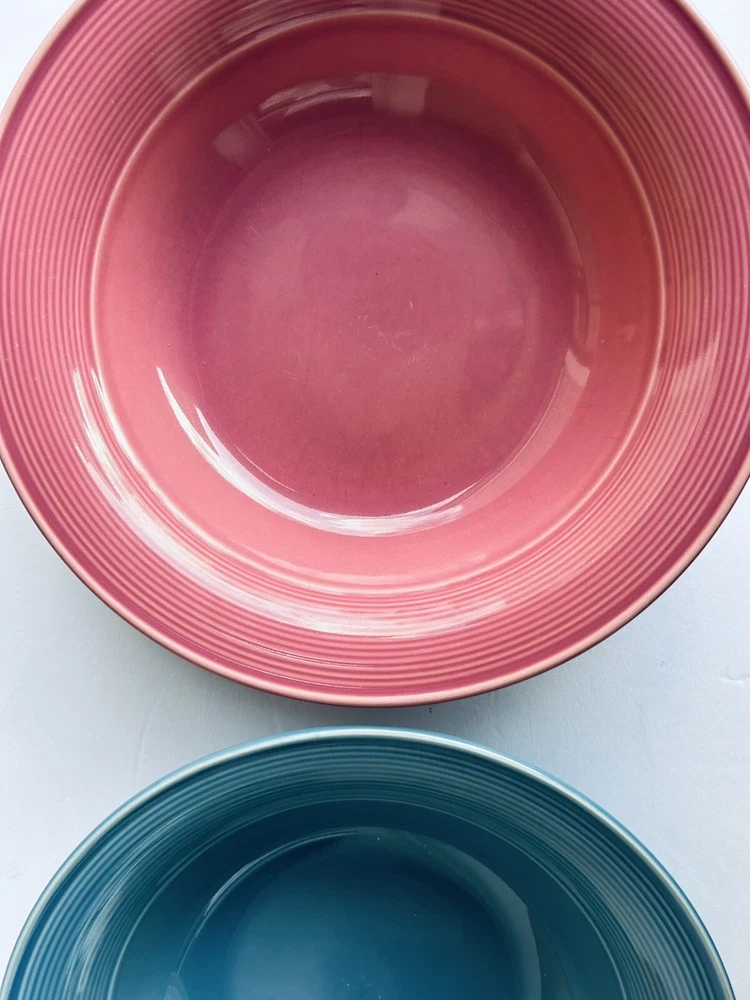 (2) Large Serving Bowls By Nancy Calhoun Dark Rose & Light Blue