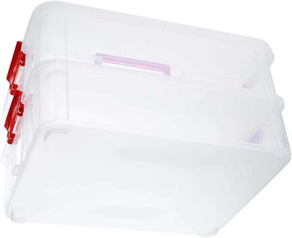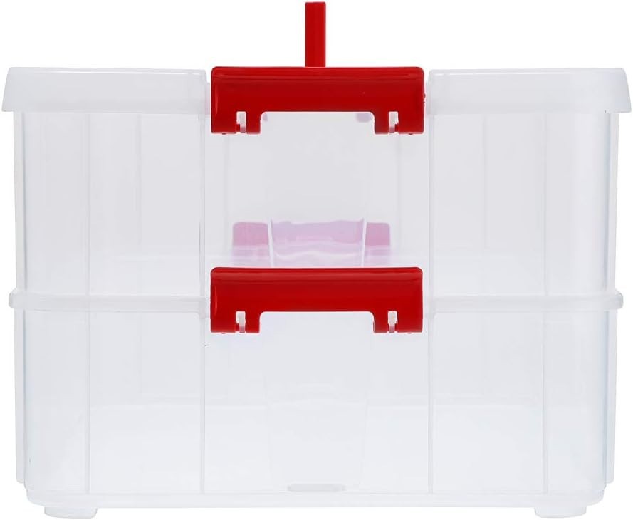 2 Layer Stack & Carry Box, Plastic Multipurpose Portable Storage Container Box Handled Organizer Storage Box for Organizing Stationery, Sewing, Art Craft, Jewelry and Beauty SuppliesRed Durable Material: The storage box made of durable high quality PP, light weight and long service life, easy to classify, easy to find, easy to store. 2 Stackable Tiers: This storage box features 2 stackable tiers of storage with 1 transparent lid, lock your supplies firmly for safe storage and transportation, and see-through latched layers allow easy access to items enclosed. Kindly Note: 2 Stackable Tiers storage box with only 1 lid. Approximate Total Dimensions: """(LxWxH), each layer container height: 9cm / inch. Large capacity and clear visible case perfect for art and craft supplies, stationery, tools, medicine, sewing kit, cosmetics or fishing supplies. Perfect to organize: The multi-layer separation design provide good sealing performance, dustproof, moisture-proof, diversified functions, powerful storage function, completely solve the disorder of items. Versatile Use: handy storage box with handle on lid for easy transporting, suitable for family, car, school, gym, workplace, travel, camping, office, health clinics, hospitals. 16 Inch Foldable Dividing Storage Box 16 Inch Foldable Dividing Storage Box 16 Inch Foldable Dividing Storage Box Clear Plastic Dividing Storage Box 2 Layer Clear Plastic Dividing Storage Box 2-Tier Cute Bear Storage Box Add to Cart Add to Cart Add to Cart Add to Cart Add to Cart Add to Cart Customer Reviews out of 5 stars 13 out of 5 stars 13 out of 5 stars 13 out of 5 stars 257 out of 5 stars 59 out of 5 stars 177 Price $$ $$ $$ $$ $$ $$ Overall Size 16""" 16""" 16""" " x " x " " x " x " " x " x " Key Features 3 Layer Foldable Design, 8 Adjustable Compartments 3 Layer Foldable Design, 8 Adjustable Compartments 8 Deep Compartments, Removable Inserts 8 Deep Compartments, Removable Inserts With Flap Lid & Snap-closure, 4 Compartments Tray Cute Bear Design, 6 Compartments Tray Portable ✓ ✓ ✓ ✓ ✓ ✓ See More