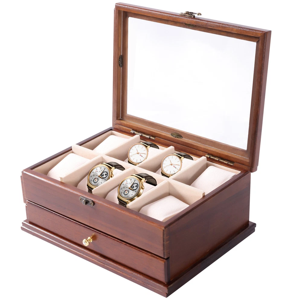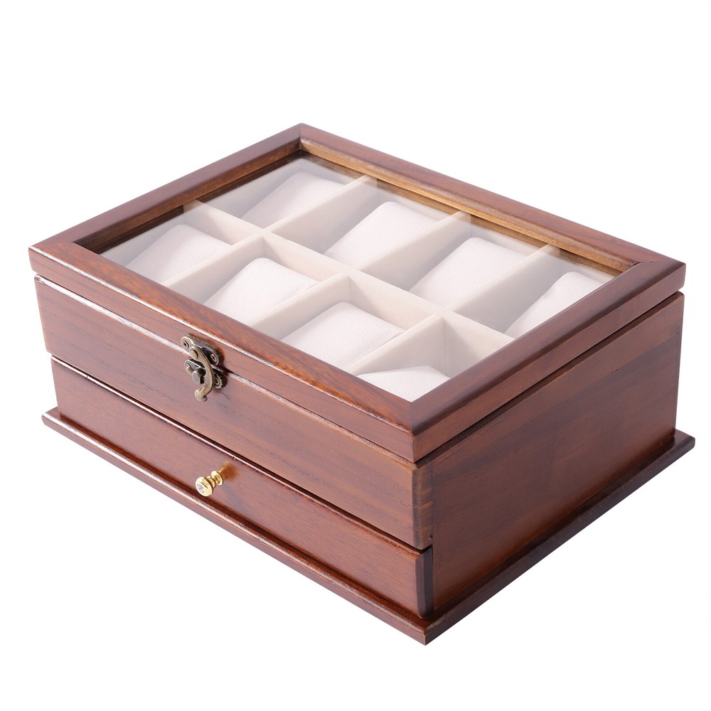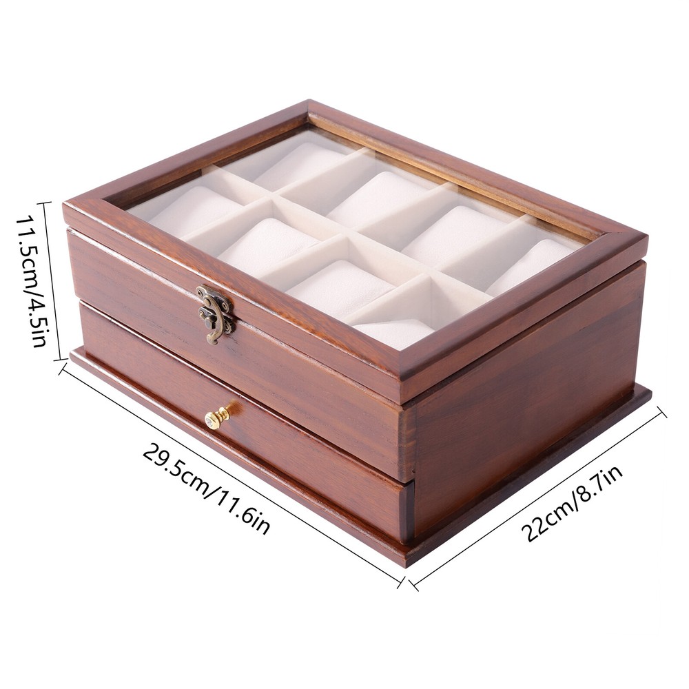Specification Color: Vintage Brown Material: Sycamore Wood + Flocked Fabric Partition Material: Density Board Skylight Material: Acrylic Pillow Material: Pearl Cotton Surface Treatment: Spray Painting Closure Type: Locking Latch Number of Layers: 2 Number of Watch Compartments: 8 Packing Size: 34.5*26.5*17cm/13.58*10.43*6.69in Product Size: 29.5*22*11.5cm/11.6*8.7*4.5in Gross Weight: 1.8kg/3.96lbs Net Weight: 1.3kg/2.86lbs Package Included 1* Watch Box 2 Layers Wooden Watch Box Storage Holder Case Organizer Jewelry Display Drawer Description Description A Watch Is Not Only a Timepiece but Also a Reflection of Your Personality That Deserves an Exclusive Room. This Watch Box Is a Stunning Masterpiece for Watch Collection Display and Storage. with Its Wooden Box, Soft Pillow, and Flocked Fabric Lining, Your Watch Jewels Will Stay Safe and Comfortable As Time Passes. This Watch Box Will Be an Ideal Choice for You! Application It Can Be Used to Store Watches, Bracelets, Necklaces, Earrings, Rings, Brooches and Other Accessories. Specification Color: Vintage Brown Material: Sycamore Wood + Flocked Fabric Partition Material: Density Board Skylight Material: Acrylic Pillow Material: Pearl Cotton Surface Treatment: Spray Painting Closure Type: Locking Latch Number of Layers: 2 Number of Watch Compartments: 8 Packing Size: 34.5*26.5*17cm/13.58*10.43*6.69in Product Size: 29.5*22*11.5cm/11.6*8.7*4.5in Gross Weight: 1.8kg/3.96lbs Net Weight: 1.3kg/2.86lbs Package Included 1* Watch Box Key Features Sturdy and Durable: It Is Made of High-quality Sycamore Wood, Which Is Durable and Environmentally Friendly. the Surface Is Treated with Spray Paint, Making It Waterproof and Anti-corrosive to Ensure Long Service Life. Large Storage Space: with Two Levels of Storage, Including Eight Watch Slots and a Drawer, It Can Store a Large Amount of Jewelry and Eight Watches to Meet Your Daily Needs. There Is Plenty of Space Between the Cover and the Pillow to Accommodate Watches of All Sizes. Compartment Storage: the Compartments of the First Layer Are Specifically Designed for Watches and Bracelets. the Second One Is a Drawer with Dividers for Rings, Necklaces, Earrings, Etc. Its Compartmentalized Design Allows for Sorted Storage While Preventing Your Precious Watches and Jewelry from Rubbing Against Each Other. Carefully Designed Pillow: the Pillow Is Made of Soft Pearl Cotton and Wrapped by Flocked Fabric on the Outside, Which Is Non-slip and Comfortable to Better Protect and Display Your Watch. Vintage Appearance: This Watch Box Comes in Vintage Brown Color, Retaining the Original Wood Texture to Create a Charming Vintage Style. It Complements Your Noble Temperament While Adding Elegance to Your Home Decor. Soft Lining: Each Compartment of the Watch Box Is Lined with High-quality Flocked Fabric to Provide You with Better Protection for Your Watches and Jewelry from Dust, Dampness, and Scratching. An Ideal Gift: the Vintage Look and Exquisite Workmanship of This Fountain Watch Box Would Be an Ideal Gift for Someone Special like Your Father, Brother, Husband, Friend, Boss, or Fountain Watch Collector. Direct Use: This 2-Layer Watch Box Can Be Used Directly Without Extra Installation, Saving Your Time and Energy. Easy to Clean: It Has a Painted Finish to Make It Easy to Clean. You Can Easily Remove Dust and Stains from It with Just a Damp Rag. Details Quality Hinges: the Hinge Is Made from High-quality Hardware Which Is Strong and Durable. It Has Been Tested Many Times to Open and Close, so You Can Use It with Confidence. Sophisticated Handle: the Drawer Comes with a Sophisticated Handle That Allows You to Easily Open or Close the Drawer, Making It Very Practical. Visible Skylight: the Lid of the Watch Box Has a Transparent Skylight Made of Acrylic, Which Not Only Prevents Dust but Also Provides a Clear View of the Watch's Storage Position for Easy Access and Better Display. Exquisite Latch: the Watch Box Features a Vintage Metal Latch to Make Your Watch Box More Stylish and Sophisticated. and the Latch Can Lock the Box up and Increase the Security of the Watch Box. Anti-slip Pads: It Has Four Non-slip Pads on the Bottom for More Stable Placement. It Also Prevents the Table from Being Scratched. Notes Please Allow the Slight Color Difference Caused by the Shooting Light and 1-3cm Error Due to Manual Measurement, and Make Sure You Do Not Mind Before Ordering. Payment Delivery details Terms of sales About us Contact us Payment We accept ebay payment 。 Fees such as import duties, taxes are not included in the item price or shipping costs. These charges are the buyer's responsibility. Delivery details Shipping: 2-9 working days to: USA Terms of sales We maintain high standards of excellence and strive for hundred percent customer satisfaction. Feedback is very important to us. We hope that you contact us immediately before you give neutral or negative feedback, so that we can address your concerns. It is impossible to address issues if we do not know about them! About us Your satis faction is our ultimate goal. We work hard to earn your trust and future business. Our certified technicians have tested each item before shipping. The unit comes with 1 year limited warranty on all manufacturing defects. a) If you receive a defective item, you may return it or ask for a discount. Please contact us within 14 days after you receive the package. b) What you returned must be intact and in its original packaging as re? u. Customer is responsible for shipping costs of the returned item. c) We will cover the cost of shipping back t with the shipping rate indicated in the registration page. We will send you a new unit or refund the full payment you paid. Thank you. Contact us Business Hour Business Hour: Monday To Friday: 8:30 AM to 5:00 PM (Beijing China time) Due to time zones, our reply to your questions may not be immediately. But within above working time, we will reply your email within 24 hours. If it's non-workdays, please