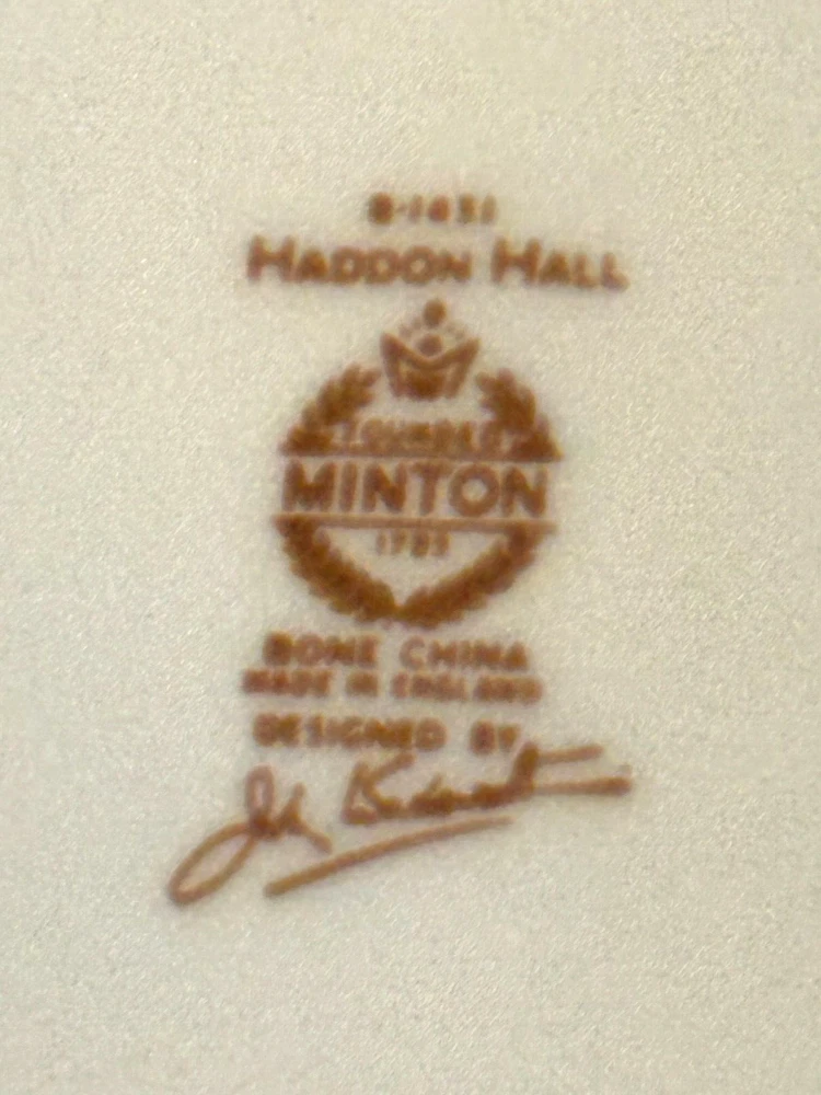 This item for sale is a pair of 2 bread plates in perfect gently used condition by Minton of England in the Haddon Hall pattern. approx 6.25 inches across with a green trim edge. Please enjoy 3 pounds free insured shipping to your USA address Please check out our other items, we probably have what you need