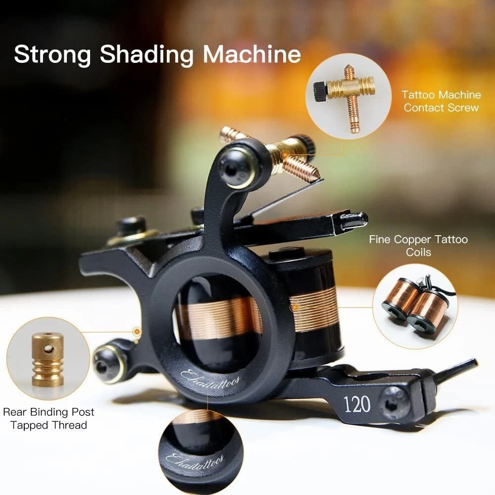 Traditional Pro Complete Tattoo Kit - Two Machines Gun Easy Use 10 Color Inks Power Supplies Disposable Needles Grips Great for Beginners & Starter Tattoo Aritsts Professional Tattoo Machine Kit Color Coils Size 1 Count (Pack of 1) Style Fashion Water Resistance Level Water Resistant About this item This tattoo kit have two tattoo machines for lining & shading and friendly beginner start tattooing life, Cast iron tattoo machine 10 wrap coils. Made of superior composite material, the spring is high-elastic and anti-fatigue for long-time working, made of copper coils. tattoo needles, tips and more accessories for tattoo artist. This tattoo needles diameter: #12. Polished, long taper; reliable for all-purpose work. One piece needle and plunger overmold allows for maximum stability and control. Ethylene oxide (EO) gas sterilized and individually packaged; single use only LED digital tattoo power supply with foot pedal and clip cord, provide quick and accurate activation/voltage adjustments. Improve your machine reliability and efficiency with smooth consistent power output from the power box Complete Tattoo Kit: this traditional tattoo kit aim to get each beginner easy learn how the tattoo machine works, take the first step in your tattooing life. Packaged: 2 pcs traditional coils tattoo machines, power supply, 20 pcs tattoo needles with tubes, steel and disposable grips, 10 pcs tattoo inks, foot pedal and tools. tattoo supply made for tattoo artists, make easy tattooing. All items tested by professional tattoo artists.