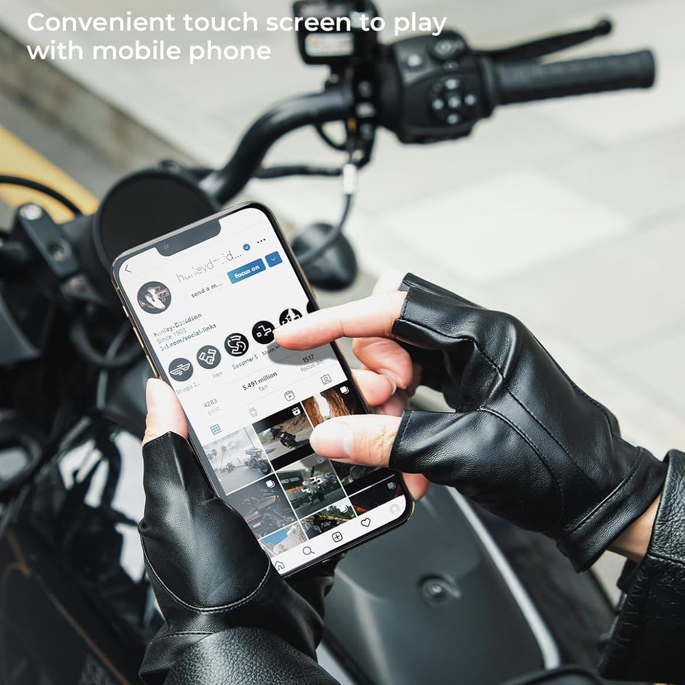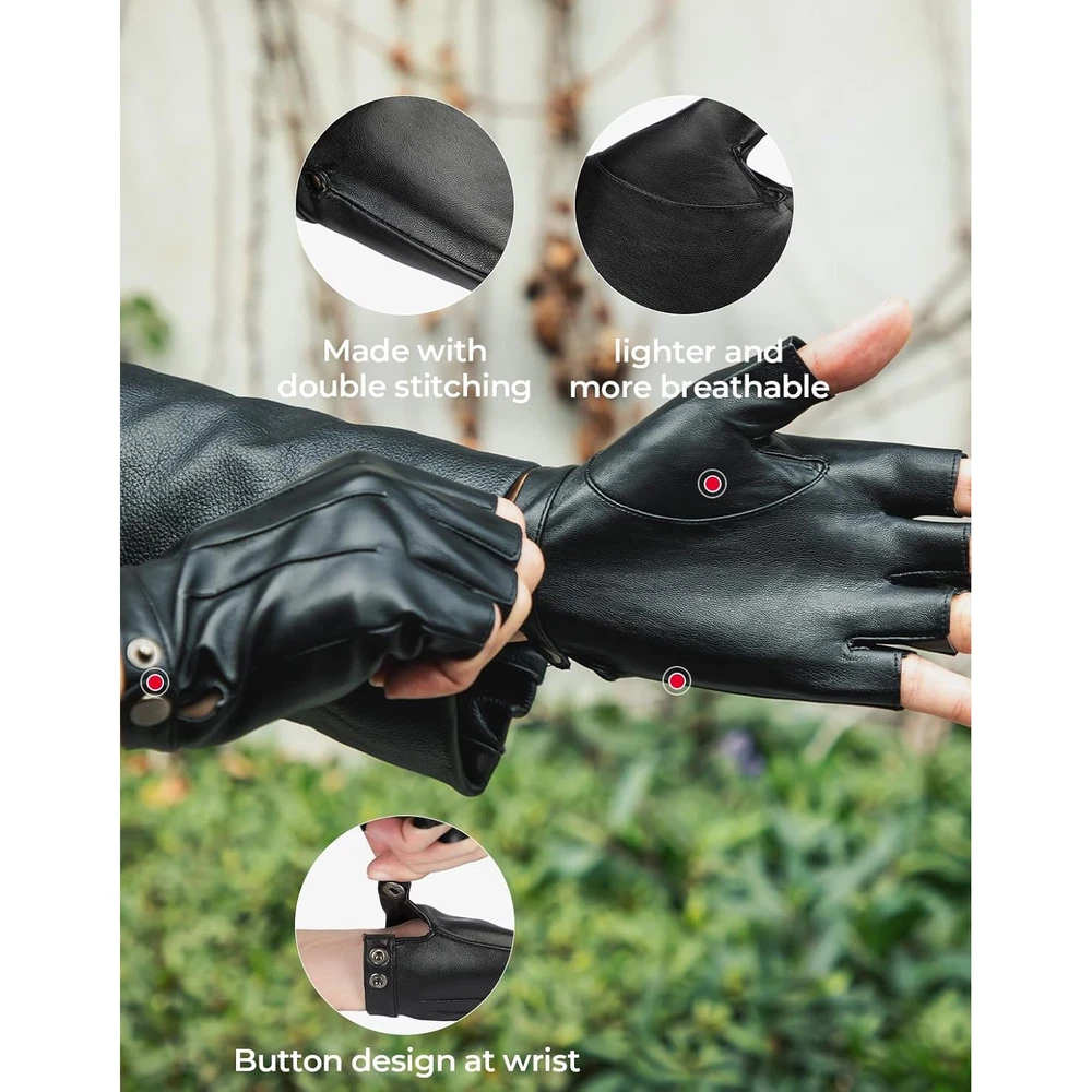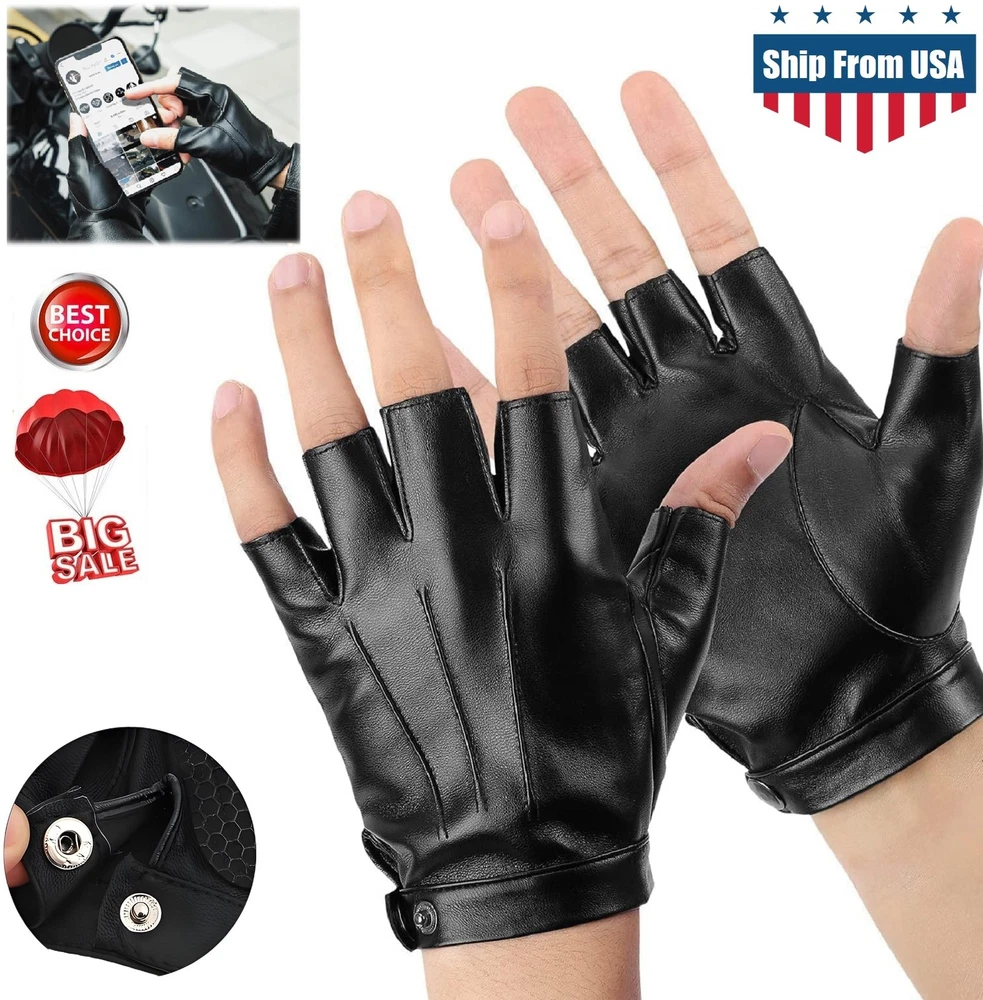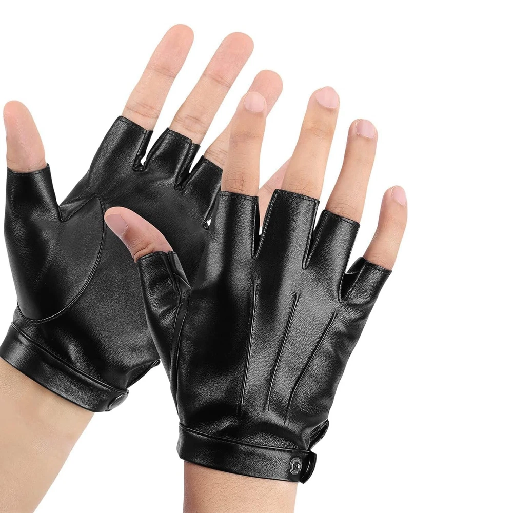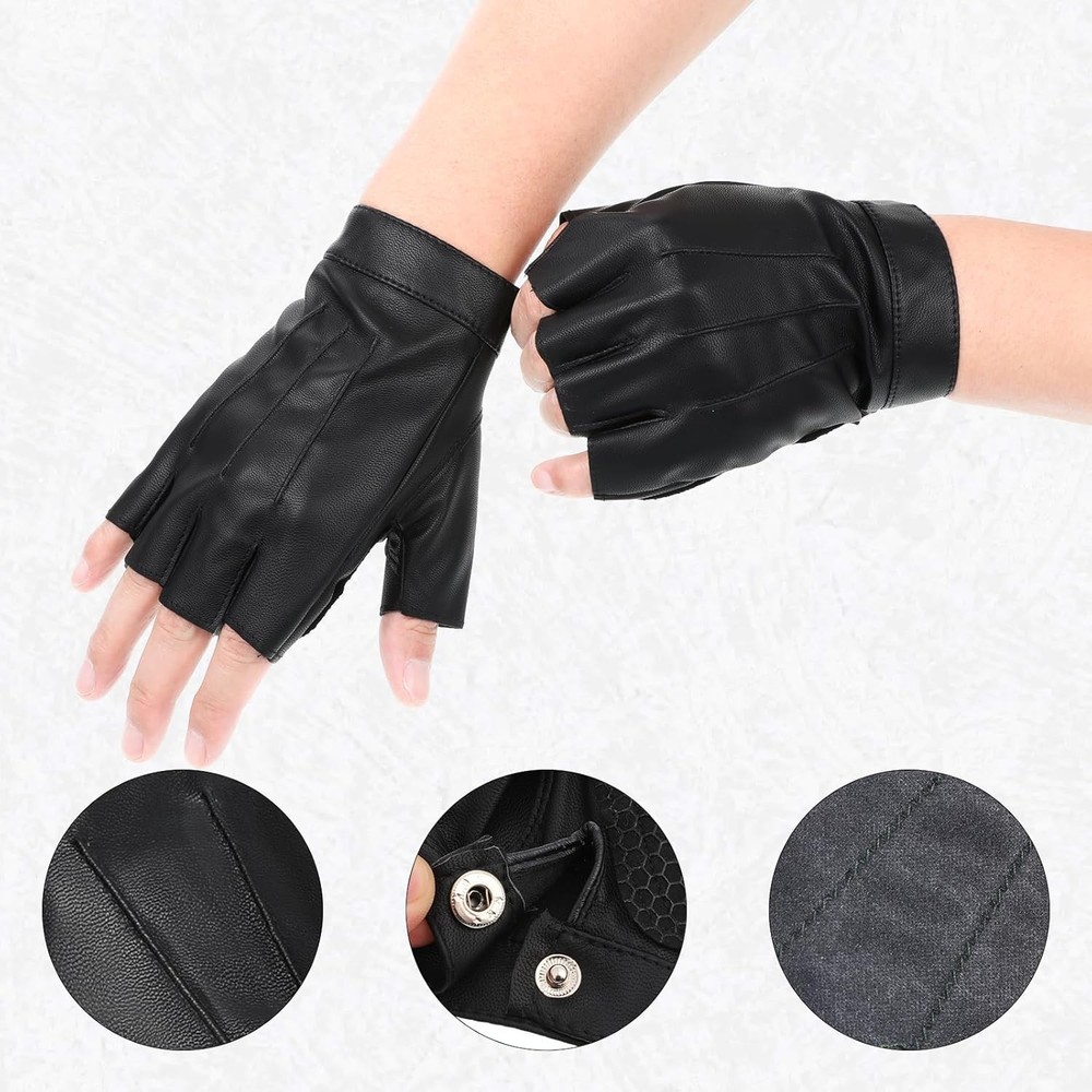 2× Men PU Leather Fingerless Gloves Mittens Winter Warmer Driving Cycling Biker