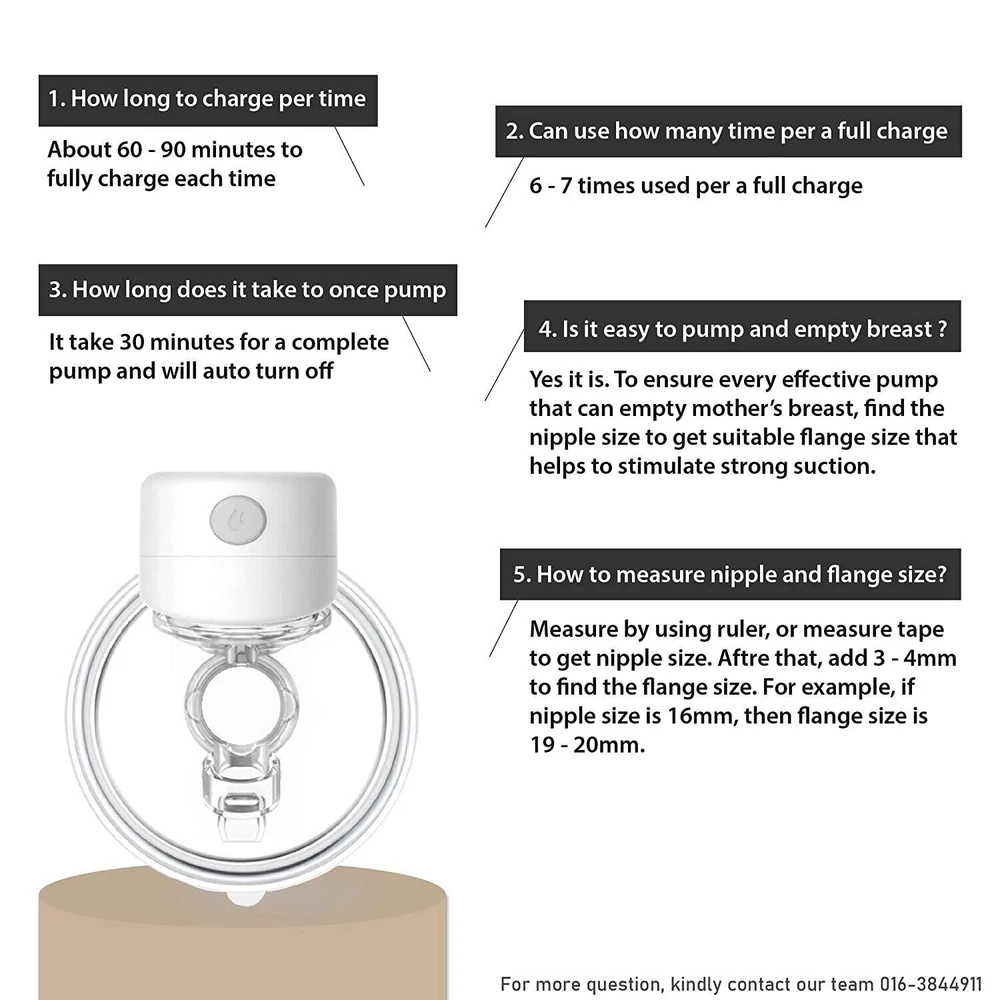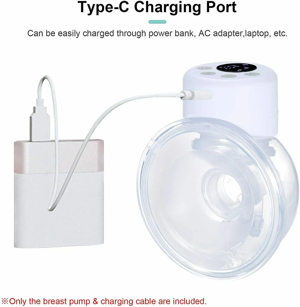 Welcome to Suntrarn , I f you hav e any questions please feel free to contact us.Thanks! Pay A t tention 1) Come with 5 Food-grade milk bag,1 Silicon Diaphragm,2 Valves extra are Free. 2)24mm Flange are sent by default. If you need 2 7mm Flan ge , you can contact us. Product Description Model S12 Silicone flange 24mm Bottle Capacity >120ml(4 fl.oz) Vacum max. 280~300mmHg Models Massage / Expression Levels 9 levels adjustment Salient features wearable breast pum Rated power 4W Usage time about 80 min Shut off 30 min auto shut off Power input DC5V/1A Charger port USB Type-C Charging time 2 to 2.5 hours Lithium battery voltage 3.7V Battery capacity 1000mAh, 3.7Wh Box size/Gross weight 180*145*80mm(7.19*5.7*3.15inch)/400g(0.88lbs) Body Item size/ Net weight 136*111*70mm(5.35*4.37*2.76inch)/218g(0.48lbs)