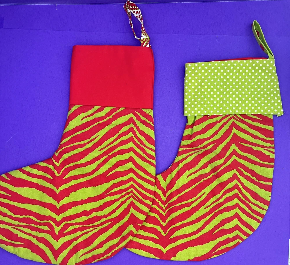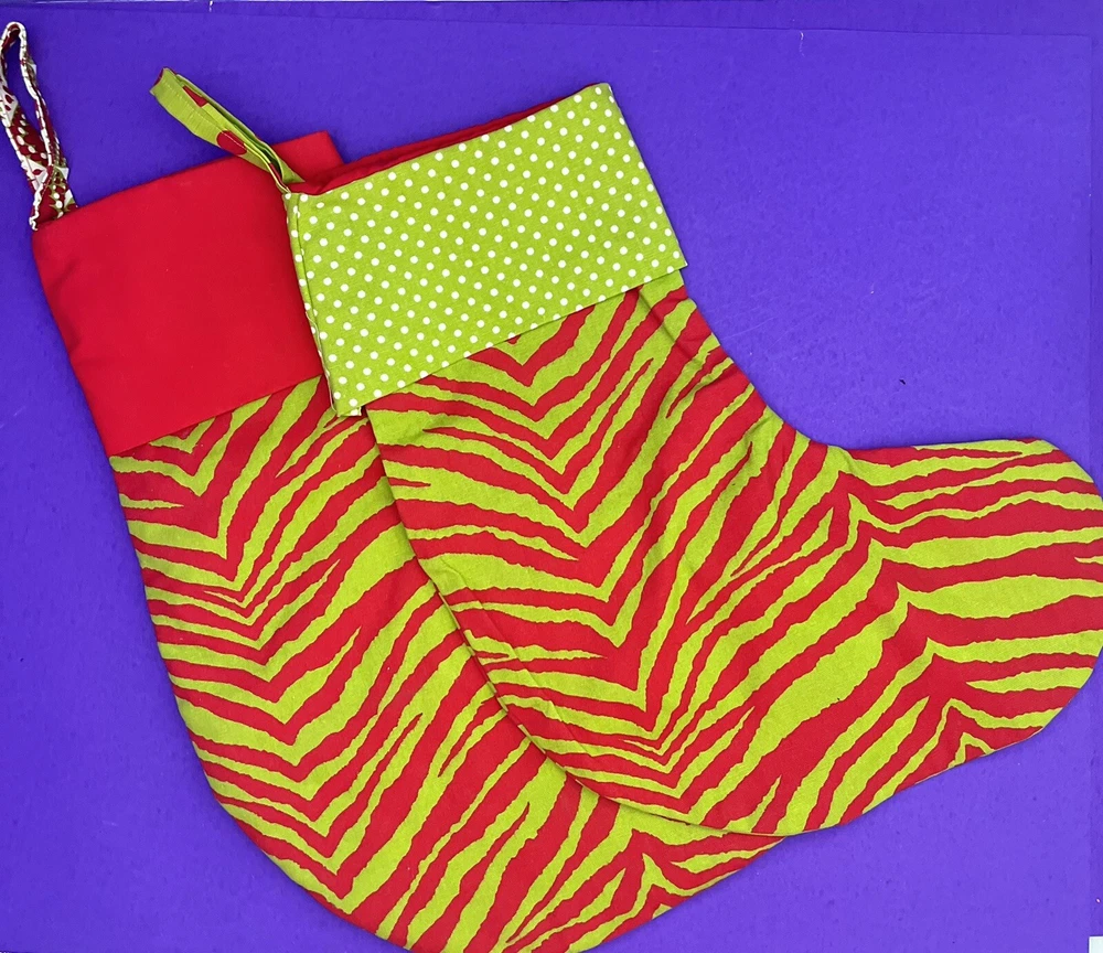2 NWOT Large Red/green Zebra Print Christmas Stockings SALE!. Condition is New. Shipped with USPS Ground Advantage.