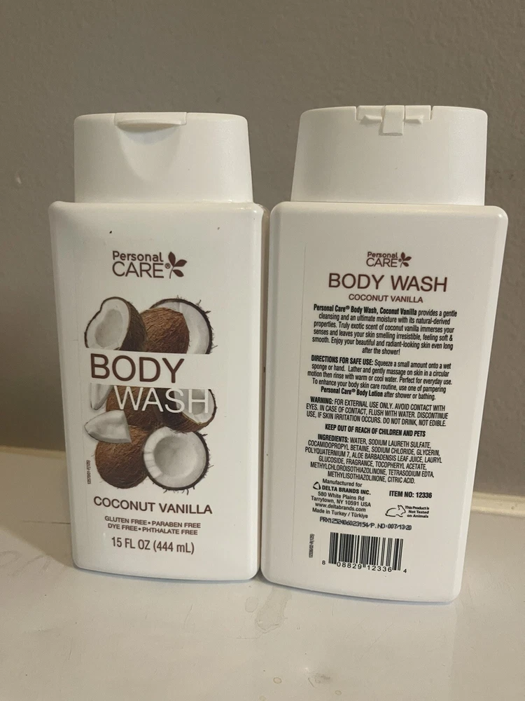 2 New Bottles Personal CARE BODY WASH Coconut Vanilla 15oz each