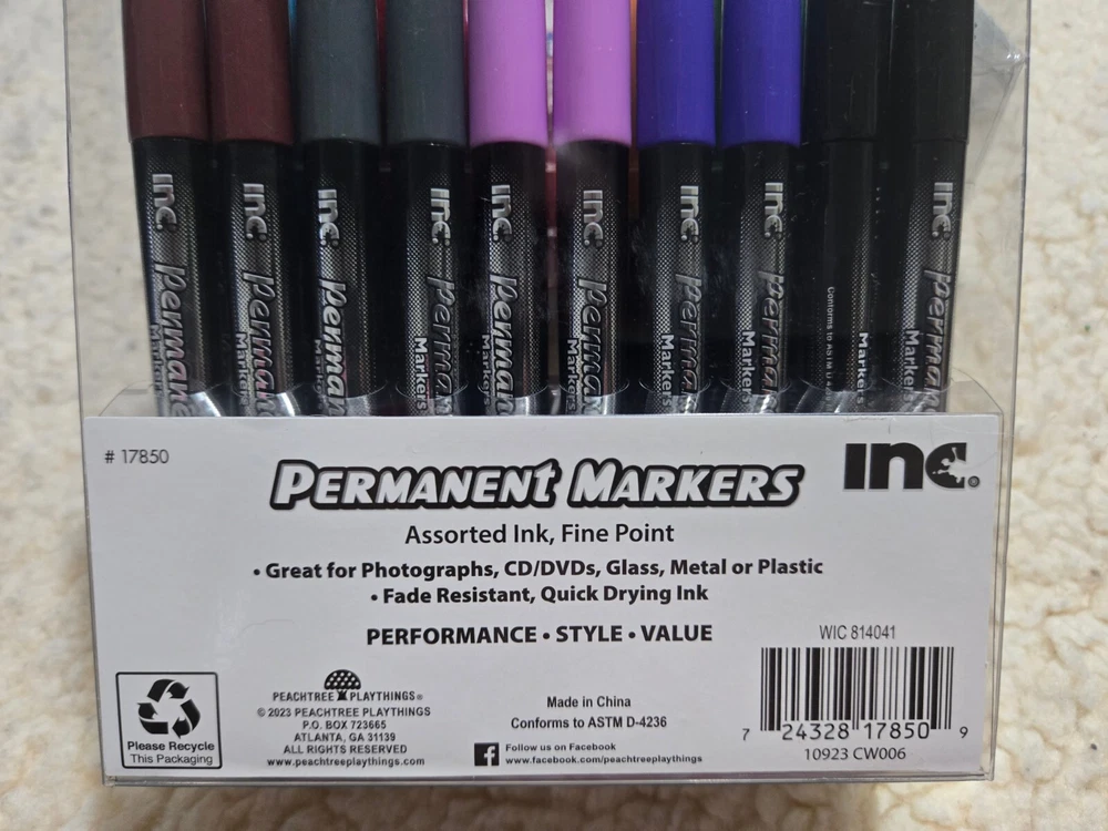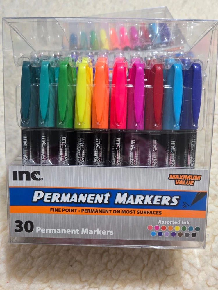 gtin13: 724328178509 Handmade: No MPN: Does Not Apply Brand: INC Country/Region of Manufacture: China Model: Inc. Permanent Markers Fine Tip 15 Assorted Colors 30 Count Type: Permanent Marker Color: Assorted UPC: 724328178509 Finish: Solid