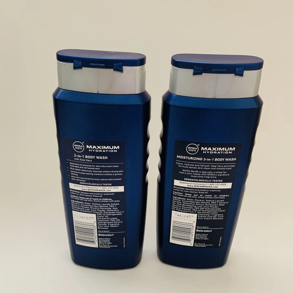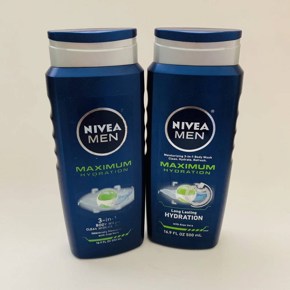 2 Nivea Men Maximum Hydration 3 In 1 Body Wash 16.9 Fl oz Each.