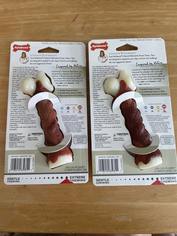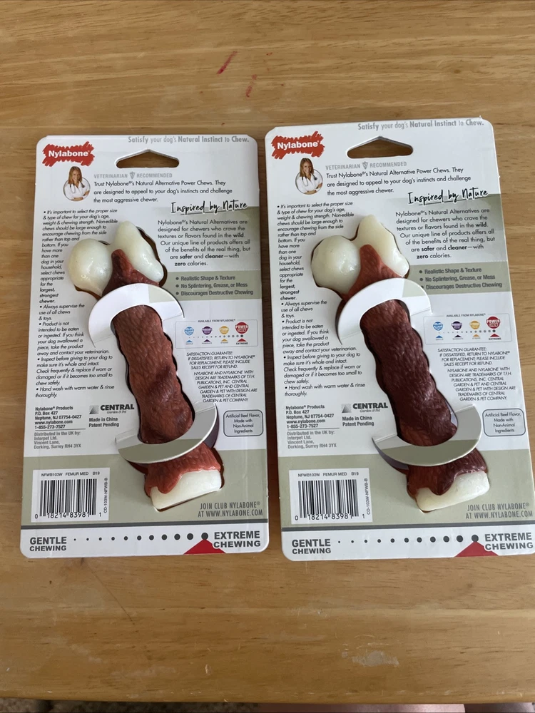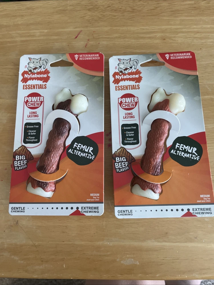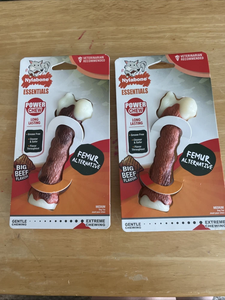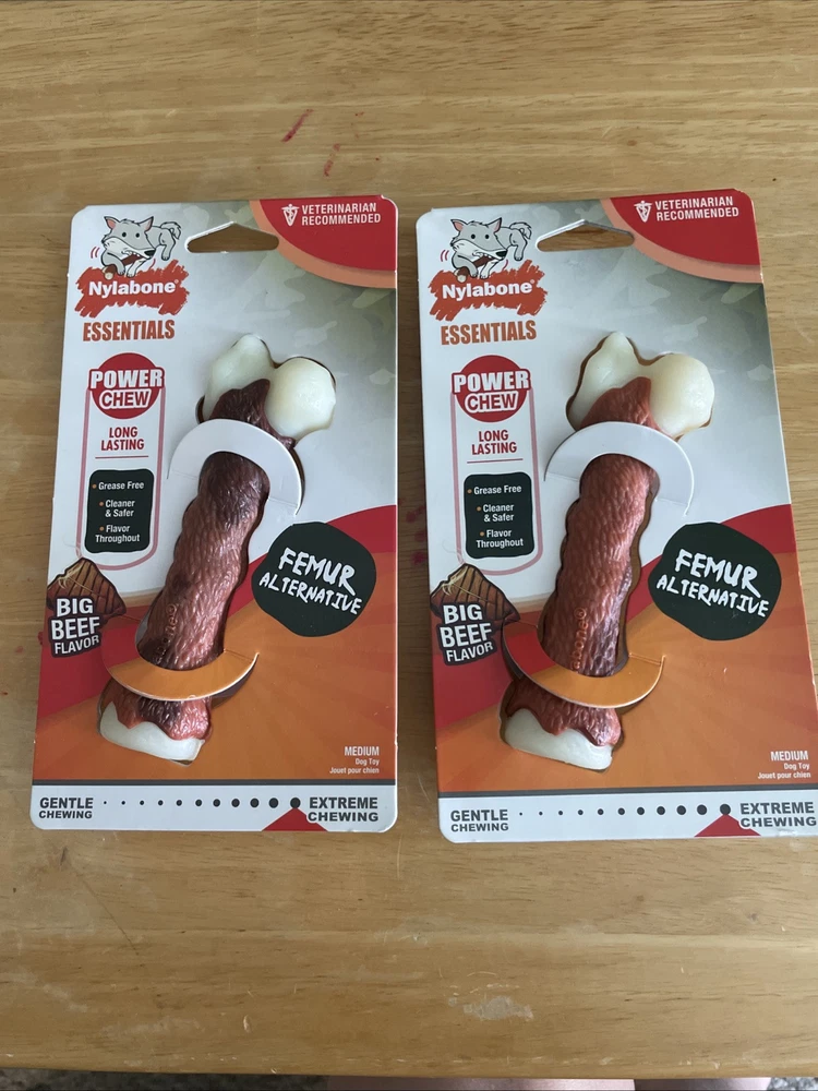 2- Nylabone Femur Bone Rawhide Alternative Power Chew Durable Dog Toy - Medium - Best offers are welcome - Medium dog toy - Femur alternative - big beef flavored - Nylabone brand - New in packaging -Grease free, cleaner and safer and flavor throughout - this is a 2 pack