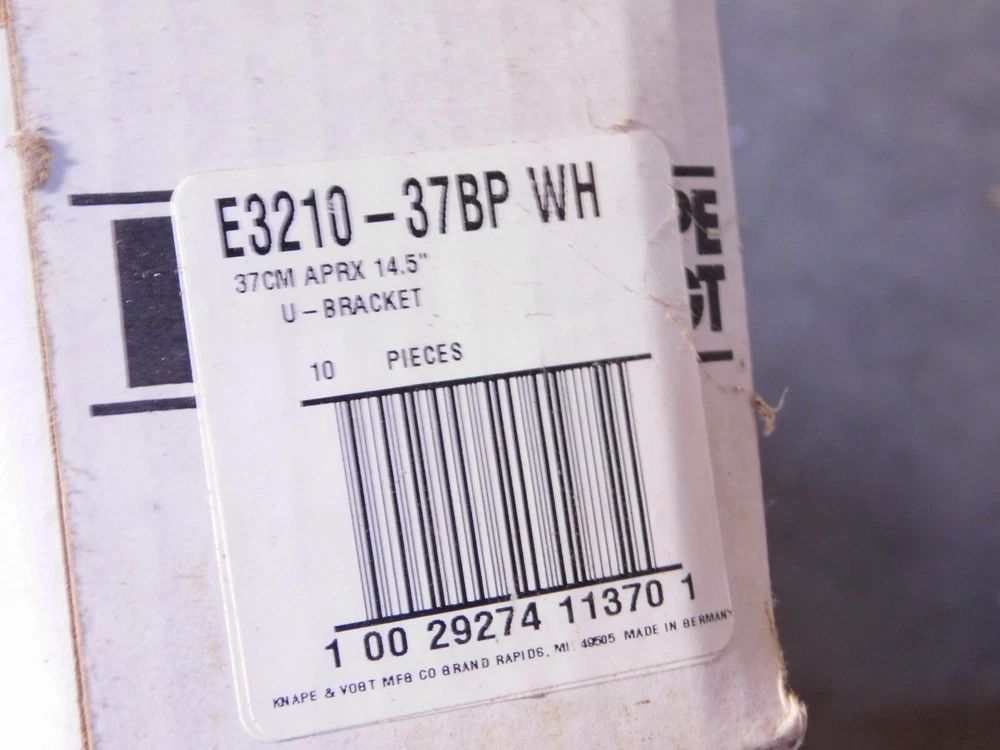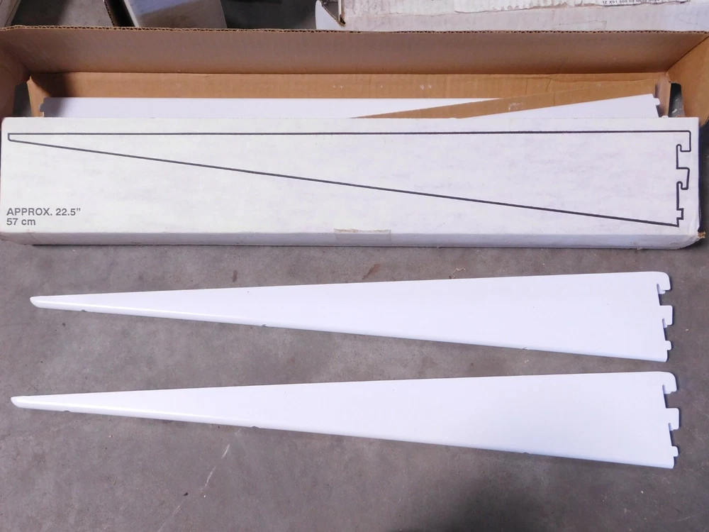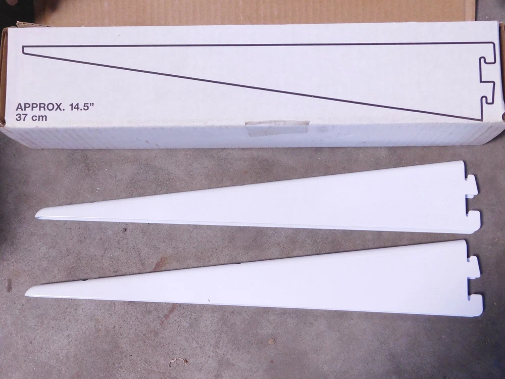 2 PACK OF SHELF BRACKETS! YOU CHOOSE THE SIZE WITH THE DROP BOX Knape Vogt Element 27cm (10.5"in) Model # - E3210-27BP WH 37cm (14.5"in) Model # - E3210-37BP WH 57cm (22.5"in) Model # - E3210-57BP WH WHITE Double Slot Shelf U-Brackets SEE PHOTOS FOR MORE DETIALS! FAST - FREE SHIPPING! WE SHIP WITHIN 24 HRS- MON-FRI. (USUALLY SAME DAY IF PAID BEFORE 3 PM. EST) UPS OVERNIGHT AND 2ND DAY AIR SHIPPING AVAILABLE. PLEASE MESSAGE US FOR PRICING AND OPTIONS! (EXPIDITED SHIPPING AT BUYERS EXPENSE) IF YOUR ITEM WEIGHS LESS THAN 16 OUNCES PACKAGED, IT WILL GO FIRST CLASS. BE AWARE! GUARANTEED DELIVERY DATES ARE CREATED BY EBAY AND MAY NOT BE ACCURATE. IF YOU NEED AN ITEM BY A CERTAIN DATE, CONTACT US AND WE WILL WORK WITH YOU. AN ADDITIONAL FEE MAY BE NECESSARY. ALL ITEMS GUARANTEED. NO QUESTIONS ASKED RETURN POLICY. FREE U.S. SHIPPING.. NOTE: IF WE ACCEPT AN OFFER LESS THAN THE ORIGINAL ASKING PRICE, WE WILL SHIP THE CHEAPEST WAY. 9 TIMES OUT OF 10, IF YOU PAY BEFORE 3:30 PM EST., MON-FRI, WE WILL SHIP THAT DAY ....WE HOPE THAT YOU ARE HAPPY WITH YOUR PURCHASE, BUT IF YOU ARE NOT, EMAIL US AND WE WILL DO WHATEVER WE CAN TO MAKE IT RIGHT...IF YOU ARE STILL NOT HAPPY, SEND IT BACK... BUT PLEASE GIVE US THE CHANCE TO SATISFY YOU! RETURN POLICY...FIRST EMAIL THAT YOU ARE MAKING A RETURN...SECOND IT MUST BE BACK IN THE MAIL WITHIN 30 DAYS FROM THE TIME YOU RECEIVE THE ITEM.ITEM MUST BE IN THE EXACT SAME CONDITION AS WHEN WE SHIPPED IT. THANK YOU FOR SHOPPING AT ALLEGHENY LIQUIDATORS ALLEGHENYLIQUIDATORS2012