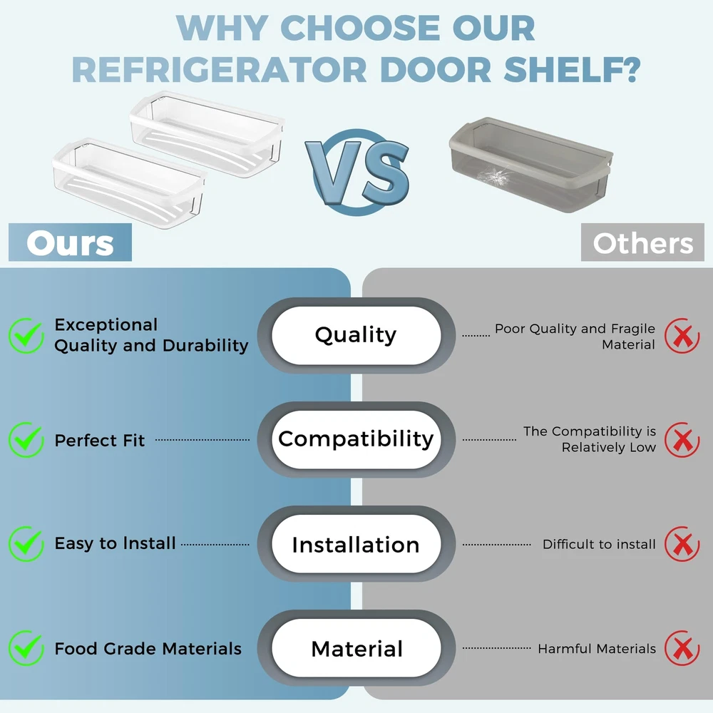 [Upgraded - Premium] W10321304 refrigerator door shelf are upgraded to food-material, safer and stronger, W10321304 whirl-pool shelf help you and keep your fridge neat [Product Size]: W10321304 refrigerator door shelf bin Length: 16.3 inches, Width: 7.2 inches, Height: 3.4 inches,Before purchasing, please check the part number or measure the original size to make sure that the shape and size are the same!If you are not sure if it is the right machine for you, please feel free to us and we will be happy to answer your questions [Replace Part]: WPW10321304 whirl-pool fridge door shelf replace part: 2171046, 2171047, 2179574, 2179575, 2179607, 2179607K, 2198449, 2198449K, 2304235, 2304235K, W10321302, W10321303, W10321304, W10549739, WPW10321304VP, 1796791, AP6019471, PS11752778, EAP11752778 [W10321304 Door Shelf Bin]: W10321304 Ken-more door bin/Ken-more refrigerator door shelf fit for Ken-more, Whirl-pool, May-tag, Ama-na, Es-tate, Kitchen-Aid refrigerator WRS322FDAB00 WRS322FDAW04 WRS325FDAB02 WRS325FDAB06 WRS325FDAM02 WRS325FDAM04 WRS325FDAM01 WRS325FDAD02 RS325FDAT04 WSF26C3EXF01 WSF26C2EXY02 ED5FHEXVS00 ED5LHAXWB02 ED5LVAXWQ02 ED5FVGXWS00 ED5FVGXWS07 [Buy With Confidence]: The WPW10321304 ken-more door shelf supports 365 days return and exchange,We have a professional after-sales service team, if you have any question about this whirl-pool wrs325fdam04 door shelf , please feel free to us through or question and answers, we will solve your problem within 24 hours. Don’t hesitate to solve the refrigerator problem easily