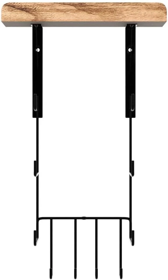 About this item 2 Pack Unique Yoga Mat Hanger: This yoga mat rack comes with floating shelves and 4 hooks, larger capacity. It can save floor space, stylish and simple design is the first choice for home gym decor. High Load Secure Yoga Mat Holder: The reinforced yoga mat holder wall mount is not easy to be deformed. The yoga mat holder is fixed to the wall through the lock between the brackets, and it will not easily fall off the wall, making it safer and stronger. The installation of the yoga mat rack only requires 5 holes in the wall, which will cause less damage to the wall. Paint Will Not Peel Off: The paint of the yoga mats holder is treated with a special process, so it will not peel off easily and will not affect the appearance and use, offers you a safe storage space for your thin and thick yoga mat.You can use bottom hooks to hang your hand towels, exercise bands, yoga mat bag and more! Home Gym Accessories: This yoga mat holder can store your yoga mats, foam rollers, exercise bands very well and more at your fingertips. It is a nifty display rack, not only display your gym equipment, but also display your bathrobes and blankets. The wooden floating shelves can also display small objects such as yoga block, picture frames, water cups, etc., to add color to your room. Easy Installation & Ideal Gifts: The yoga mat storage comes with required hardwares and clear instruction for quick installation.