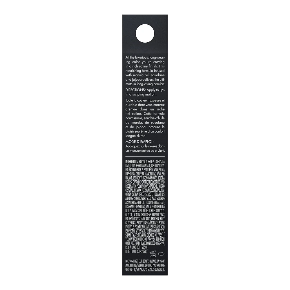 RICHLY PIGMENTED, BOLD LIPSTICK: Serve up your best O face with bold, satiny color in one single swipe that creates a satin finish. HYDRATING & LONG-LASTING FORMULA: e.l.f. Cosmetics’ O Face Satin Lipstick's creamy, long-lasting formula is infused with nourishing & hydrating squalane and jojoba esters for a super-comfortable, next-to-nothing feel. AVAILABLE IN 20 SHADES: e.l.f. O Face Satin Lipstick is available in 20 sultry shades. Dirty Talk is a beige pink. BEAUTY TIP: Exfoliate lips with e.l.f.’s Lip Exfoliator, use our e.l.f. Love Triangle Lip Filler Liner to line, and finish with the O Face Satin Lipstick for a complete lip look. Dirty Talk goes great with Love Triangle Lip Filler Liner in Soft Pink. SKIN-LOVING INGREDIENTS: All e.l.f. products are made from skin-loving ingredients you want, minus the toxins you don’t—all at good-for-you prices. All e.l.f. products are 100% cruelty-free and Vegan