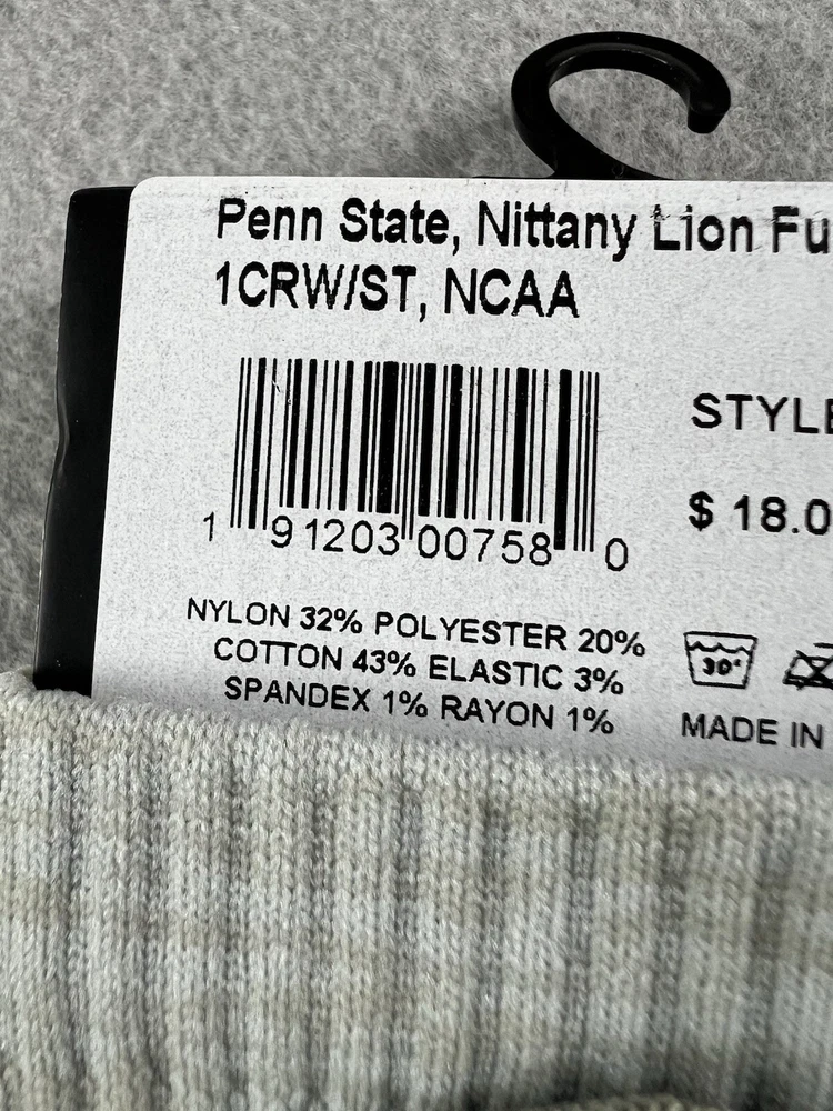 2 PAIRS Strideline Penn State Nittany Lions Crew Socks Gray/White Men’s M/L