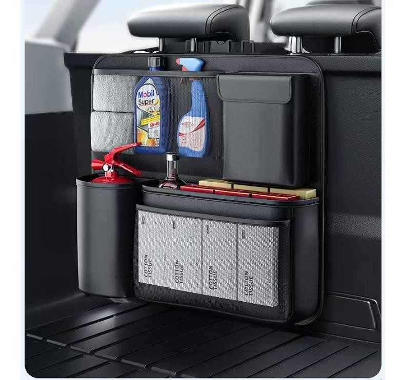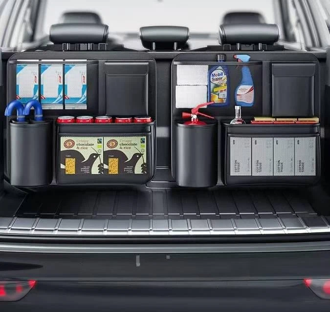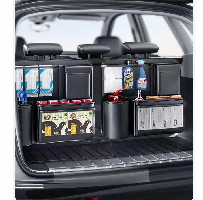 Keep your car trunk neat and tidy with this versatile trunk organizer. Designed to maximize storage space, it features multiple compartments to hold a variety of items, from emergency supplies to snacks and cleaning products. Features: Ample Storage Space : Comes with various sized pockets and compartments to accommodate different items, keeping them organized and easily accessible. Durable Construction : Made from high - quality materials that can withstand the weight of stored items and resist wear and tear. Easy Installation : Simple to set up in your car trunk without the need for any tools, and can be adjusted to fit different trunk sizes. Multi - functional Use : Ideal for storing car care products, emergency kits, food, drinks, and other essentials for travel or daily use. Secure Hold : Designed to keep items in place during driving, preventing them from sliding around in the trunk. Specs: Material : Sturdy Oxford cloth or similar durable fabric. Dimensions : Customizable (provide specific length, width, and height if available). Compartment Types : Mesh pockets, elastic loops, large storage bins, and bottle holders. Installation : Attaches to car trunk via straps or hooks (details based on actual design). Color : Black (as shown in the image).