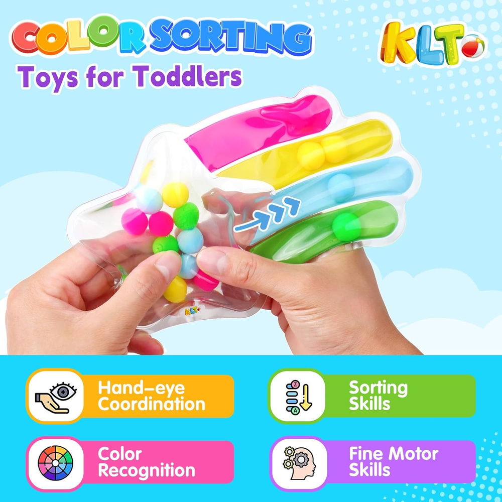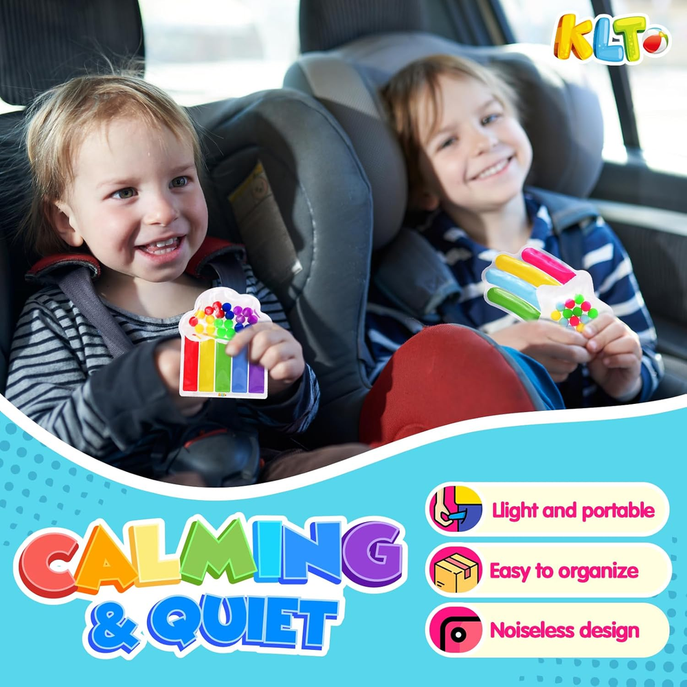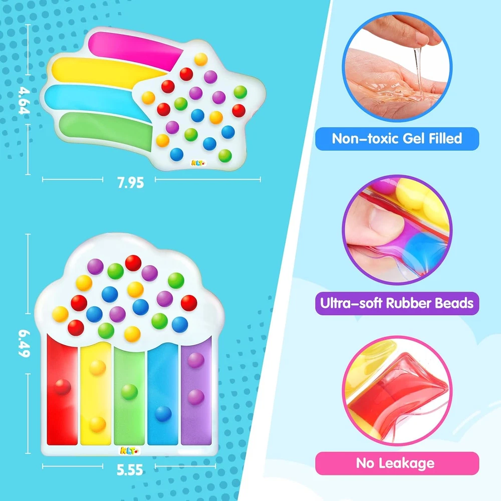 Quiet &Portable for On-the-Go Play: This toy features a silent design that eliminates annoying noises during play, allowing parents to drive without distractions. It's an ideal companion for use in the car, while waiting in a restaurant, or while traveling. Compact and portable, it can be easily stored after playtime without taking up much space, reducing the risk of loss. When children get anxious during long trips, pushing the colorful beads provides tactile sensory comfort, helping children calm down and turn boring waiting times into concentration training sessions Educational Benefits & Early Development: Designed for children with cloud & star shape set, bright colors and soft texture. Two sizes of curves to meet the needs of different grasping stages of small hands. 1-2 years old can squeeze and move the beads to help develop fine motor skills, color recognition and provide sensory stimulation. 2-5 years old can use a variety of colors and the number of beads for counting, color matching and sorting, practice observation and hands-on skills. These sensory toys can meet the needs for children's early education enlightenment Learning Through Interactive Play: The 2pcs color sorting toys supports parent-child cooperative games such as color matching and bead counting, strengthening the bond during interaction and guiding children's growth. Designed with 7 colors and 36 beads, children are encouraged to explore the rules of sorting at their own pace. The open-ended color matching game stimulates creativity, develops observation skills, and reduces children's dependence on electronic devices. Children can take turns or work together to play and share ideas, developing interaction and communication skills Safe, Durable and Easy to Clean: Made of soft and durable materials, rounded corners with no sharp edges or small parts, gel and beads are firmly sealed. Even on bumpy journeys, parents can rest assured that their children are free to explore without having to worry about safety issues. Washable surface is easy to clean, our sensory fidget toys can be played at anytime indoors or outdoors to meet the needs of high frequency use Ideal Gift for Preschool: This color matching toy is specially designed for preschoolers. The sensory toys for 3 4 5 year old will bring your kids more happiness, great toddler toys for ages 3-8 boy girls, preschool learning activities. Ideal birthday gifts, travel toys, easter basket stuffers, Christmas gifts and holiday gifts. Nice toddler teaching tool and helpful learning resource for parents, teachers to use in kindergarten daycare classroom or at home Product Description