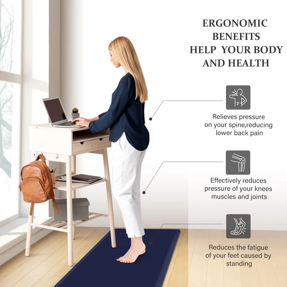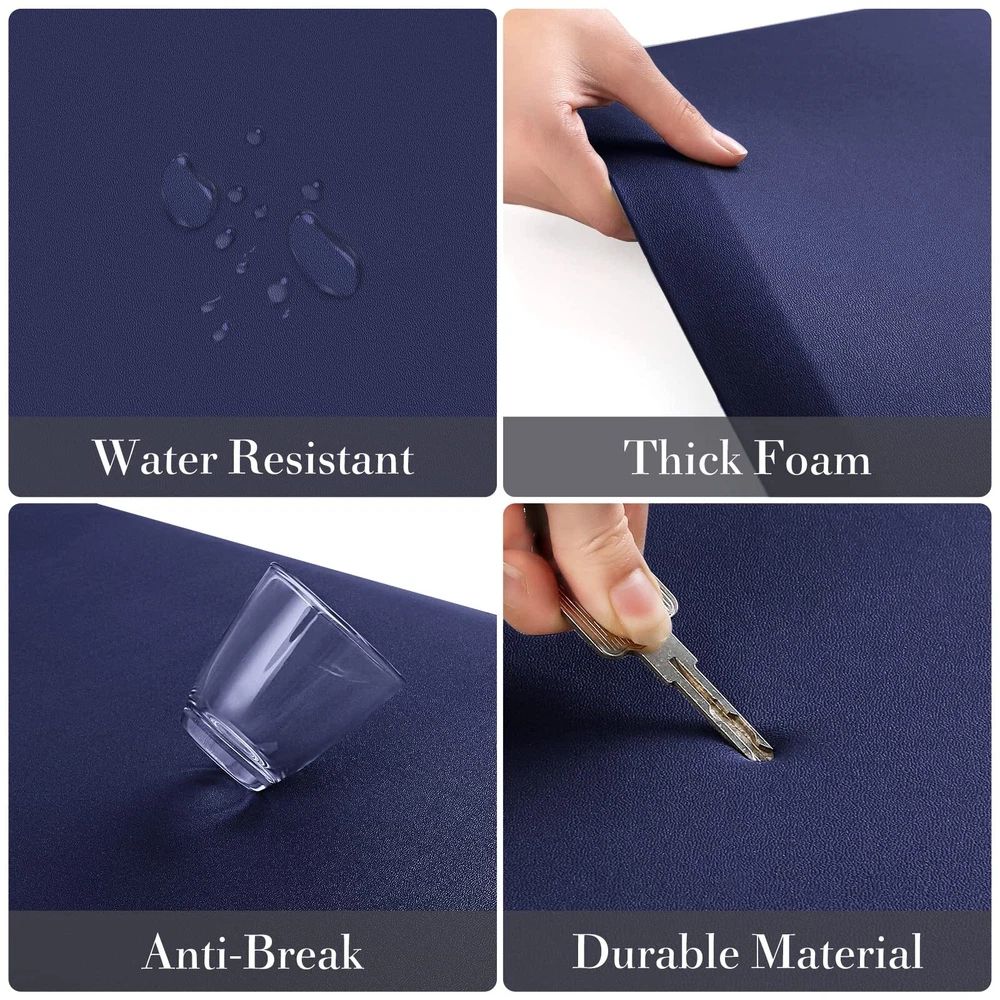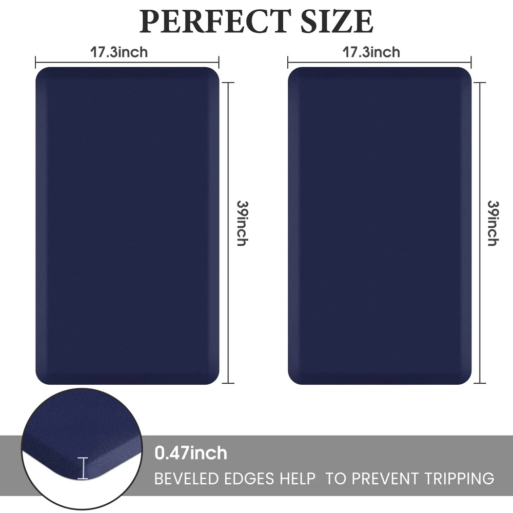 Comfort&Anti-Fatigue: The package includes 2 packs of kitchen carpets (17.3"x39"+17.3"x39"). The 0.47-inch anti-fatigue kitchen mat perfectly combines support and softness to provide you with thick cushioning support for long-term standing; kitchen rug helps to improve blood circulation and relieve back pain, knee pressure, and foot fatigue caused by standing. What a perfect gift for your family or friends! Premium Materials: kitchen mat is made of high-quality PVC material, phthalate-free, latex-free and odor-free. Premium materials determine the durability, comfort, elasticity, and softness of household floor mats. Even if it is used continuously, our high-quality mat can remain as it is. Anti-slip stability: The non-slip kitchen floor mat can be applied to a variety of surfaces such as wood, ceramic, laminate, marble, and concrete. The unique beveled edge design of our comfortable rug helps prevent trips and slips. [Note] Open rug fully place on even, flat, dry floor. Water under rug may result in slippage. Rug must be placed on dry surface during use. Easy to care: Made of water-resistant material, the kitchen mat is easy to clean-simple rinse with cold water or wipes with a damp cloth when water, stains, or oil splash on the kitchen mat, and then air dry for daily care. Multi-purpose: The anti-fatigue mat provides an extra large area to stand in front of the laundry room, kitchen, office, sink or any other high-traffic indoor or outdoor space. Also, the floor mat with neutral colors provides a fashionable accent to any area within the home.