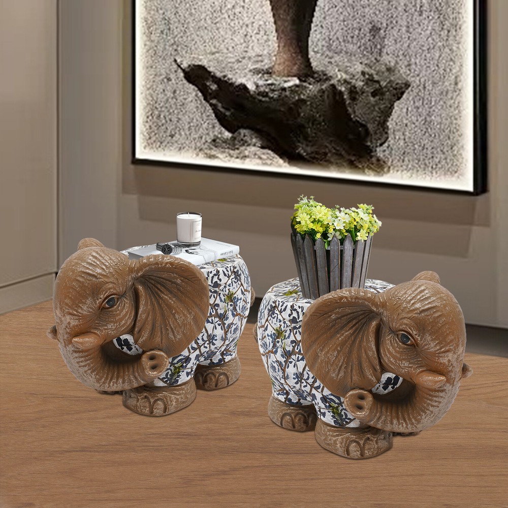 Brand: Unbranded UPC: Does not apply Pattern: Blue and White Porcelain Item Length: N/A Feature 1: Great Durability,Exquisite Appearance,High-quality Each Load-bearing Capacity: About 50kg/110.23lbs Number of Items: 2 Style: Modern Net Weight: 6.5kg/14.33lbs Item Height: N/A Mounting Type: Floor Standing Item Width: N/A Material: High quality material Gross Weight: 8kg/17.64lbs Assembly Required: No Shape: Elephant Type: N/A Process: Hand Drawn, Carving Color: Brown gtin13: Does not apply Each Seat Size: 22*20cm/8.66*7.87in Indoor/Outdoor Usage: ‎Indoor&Outdoor Package Size: 43.5*31*29.5cm/17.13*12.2*11.61in Each Product Size: 38*25*23cm/14.96*9.84*9.06in