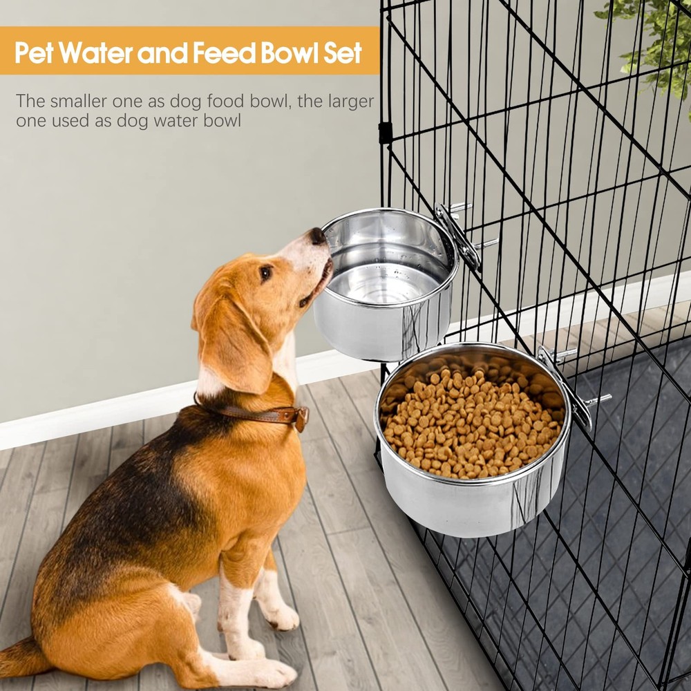 2 PCS Non-Spill Stainless Steel Dog Bowls for Cages - Medium Pet Food & Water Dishes