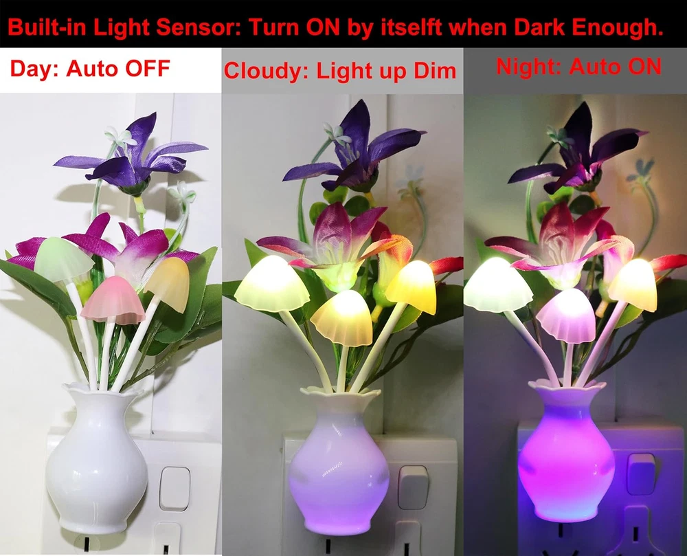 Store New Arrivals Add to Favorite View Feedback Contact 2 PCS Plug-In Night Light with Auto Light Sensor,Rgb LED Mushroom Night Light Wall Red Lily Flower Lamp 1W Energy Efficient Night Light for Adults Kids Nursery Room,Bedroom,Lounge,Hallway,Stairs Description Item model number NL-7469 Light Source Type Energy Efficient Style Modern Number of Items 2 Power Source Corded Electric Number of Light Sources 2 Control Method Touch Switch Type Touch Batteries Included? No Lighting Method LED Lamp Type Sensor Night Light Plug In Lamp Cartoon Character Mushroom, Lily Flower Number of Pieces 2 Room Type kids bedroom,living room,kitchen,bars cafes,restaurants,bathroom, other places need soft light at night Bulb Shape Size BT37 Installation Type Plug-in Product Dimensions 7.4"D x 2.7"W x 1.96"H Material Plastic Efficiency Energy Efficient Age Range (Description) All Ages Controller Type Push Button Finish Type Polished Specific Uses For Product Decoration, Nighttime Lighting Indoor/Outdoor Usage Indoor Water Resistance Level Not Water Resistant Batteries Required? No Item Weight 0.13 Pounds Connectivity Technology USB Connectivity Protocol Homeplug Special Features Cordless Special Feature Cordless Shade Height 1.96 Inches Bulb Base Prong Shade Color Red Mounting Type Wall Mount Color Red Wattage 1 watts Is Cordless? No Base Material Silicone Shape Mushroom, Flower Voltage 1.2E+2 Volts Recommended Uses For Product Decoration Shade Material Silicone Finish types Polished Included Components Flower Vase Size 2 Pack 2 PCS Smart Sensor Night Light Ideal for home (bedroom,living room,kitchen et), bars, cafes, restaurants , party and other places where you need soft light at night, such as baby's rooms,hallway,bedroom,bathroom, living Room,corridor Stairs basement etc. Universal decorations Night Light. The plug-in sensor night light is used in bedroom, nursery room, kids room, kitchen, bathroom,hallways,stairs, basement or other place you need soft necessary light at dakrness. It also can create dreaming romantic peaceful atmosphere, let us relaxed. Mondern night light with AUTO Dusk to Dawn Sensor. The mushroom night light has built-in light sensor, it not only turn on/off the night light automatically, but also change the brightness according to the environment. It’s energy saving and easy use. (DO NOTE: the night light will TURN OFF automatically when the environment is bright enough.) Durable night light. The LED of the night light could provide more than 25000 hours of continuous and stable work. The lily flower and the mushroom are made of poly and silicone, they are also designed for long-time use. Easy Install. When you receive the night lights,position lily flower and the mushroom in suitable location, then plug into the socket.To test the night light, please cover the light sensor on the bottom with your finger or some other Dark and thick objects. If meet any question, please . We Provide you satisfying solution. Product Description AUSAYE 2 PCS Led Plug-in Red Lily Flower Night Lights for Adults Kids Nursery Baby, Led Night Light with dusk to dawn sensor, keep your kids, baby a good sleep, or give your family a romantic environment. Specification: Mushroom cap material: Silicone Leaf and flower material: Plastic Item Weight: 22g Product Dimensions: 19 x 6 x 17 cm Color: 7 colors changing (the middle mushroom and the flower pot can changes light color by themself) Input voltage: 110v-220V, 50-60HZ Light Source: 4 pieces of LED (led in the bottle and middle led can change color) Wattage: 0.5 watts Package content: 2 x Red Lily flower mushroom night lights M ulti-Application Great for Kid's Room, Nursery,Living Room, Bedroom,Kitchen, Bathroom, Hallway, Stairways, Entryway,Corridor, Basement, Garages or Any Dark Corner Say good bye to bumping into obstacles in the dark after you get AUSAYE 0.6W Led Night Lights and put them around your house.They will greatly help you in night operations. Note : before return with reason doesn't work, DO test the night light in very dark place at night since the night lights are dusk to dawn night light. Built in Dusk to Dawn Photo Sensor (Premium Light Sensor) /Standard America Plug Auto on at night Auto off during the day It's normal: They may not work in the daytime. Because they Only ligh up when the environmeng is dark Plug type: standard US Plug Only Work at Dark Environment These night lights are built in the dusk to dawn light sensor. Only turn on by itself at dark environment. If the environment is bright enough, they will not turn on. Please test it whether they can light up at night after the environment light is dark. If light up at dark environment, they are good. Space Saving Free the other outlet for other devices. Color Changing Light of Flower Vase and the Middle Mushroom Lights Soft 7 Color Changing night light Color softly smoothly change from to the others Mushrooms: Very soft and pliable The flower bottle and the middle mushroom can change color,very pretty cute light for decor in our home. Fairy Theme Lamps Give your family a romantic life. Can be used anywhere need light, such as stair,bathroom, kitchen, living room,bedroom, Stairways, entryway,corridor, basement, Garages home or hotel decor etc. Package Included 2* night lights in one package 2 x LED night lights Color Changing Nightlight for your home ABOUT US We offer the best prices around on high quality products. Our E-store includes media such as books, movies, music and games while offering electronics, toys, sporting apparel, clothing, tools, general home, garden items and more. SHIPPING We are always working hard to ensure your package arrives as soon as possible. Please understand that some factors like weather, high postal traffic, and the performance of shipping companies are outside of our control. We offer free shipping to the lower 48 states and ship within 2 business days of payment, usually sooner. We do not accept P.O. Boxes. Please provide a physical address. RETURN