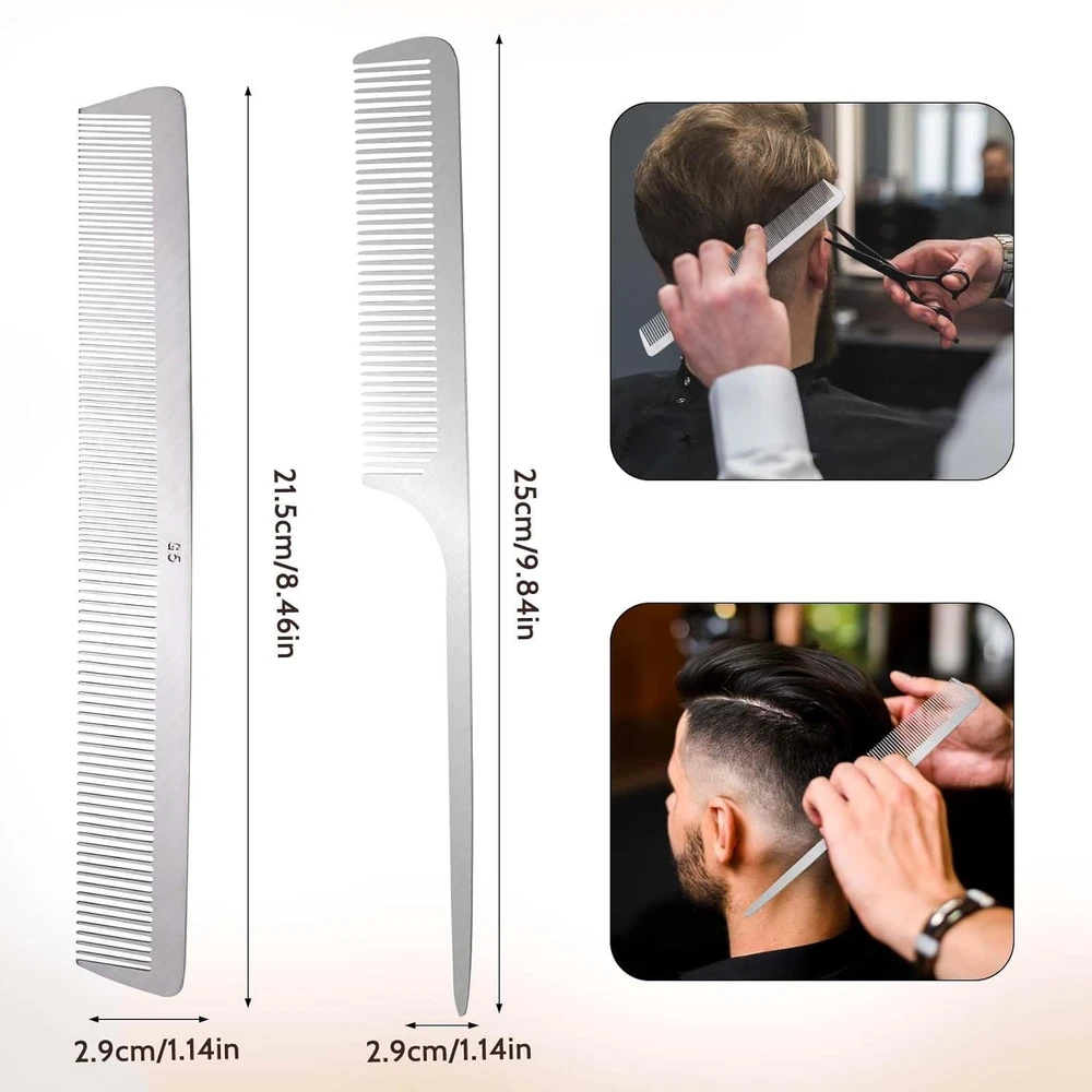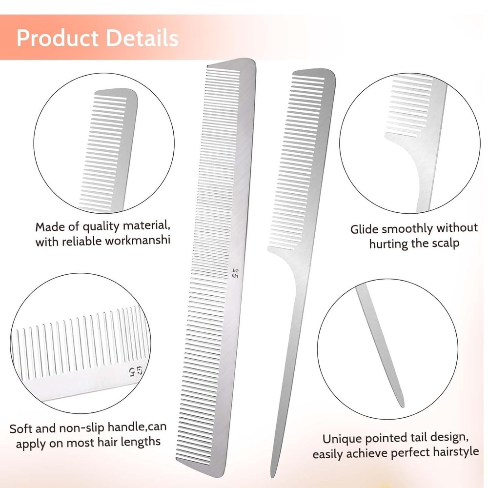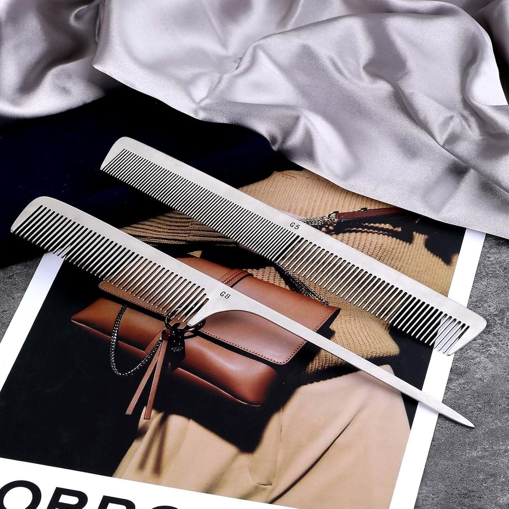 2 PCS Stainless Steel Rat Tail Comb with Metal Pick and Flat Top Barber Comb for Hair Styling Free Shipping Material Stainless Steel Brand Mozeat Lens Size Small Power Source Manual Number of Items 2 About this item Material: Our rat tail comb is made of stainless steel, which can be applied for a long time, not easy to break. Well Made: Smooth and anti-static comb teeth will not pull, twine or harm your hair. Rat Tail Comb: The parting tip of the metal rat tail comb can help you part your hair, ideal for sectioning and styling. Size: The metal rat tail hair comb measures approximately Wide Application: The hair styling combs are suitable for hair cutting, styling or dyeing, whether long hair or short hair, fine hair or curly hair. The parting combs for braiding hair are nice gifts for your friend and family members.