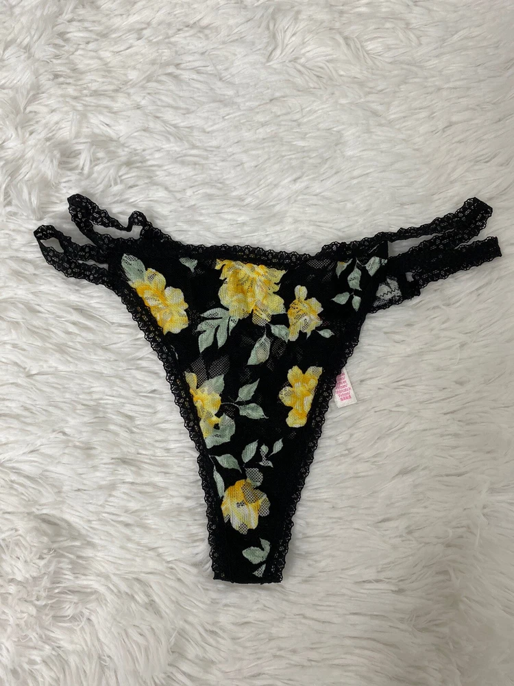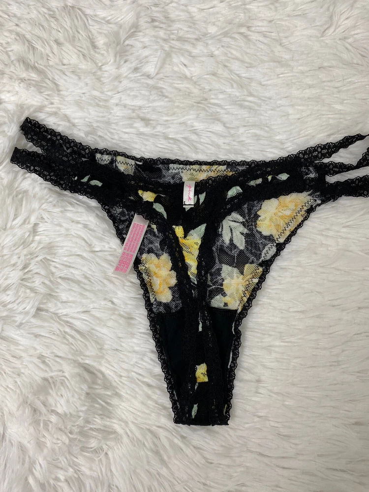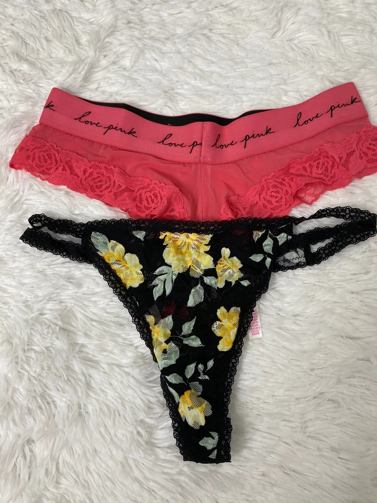 2 PINK Floral Lace Strappy Thong Panty Multicolor Floral yellow roses Size S/M they are new with out tag in excellent condition one is size s and the other one is M they both fit medium please see pictures for more details
