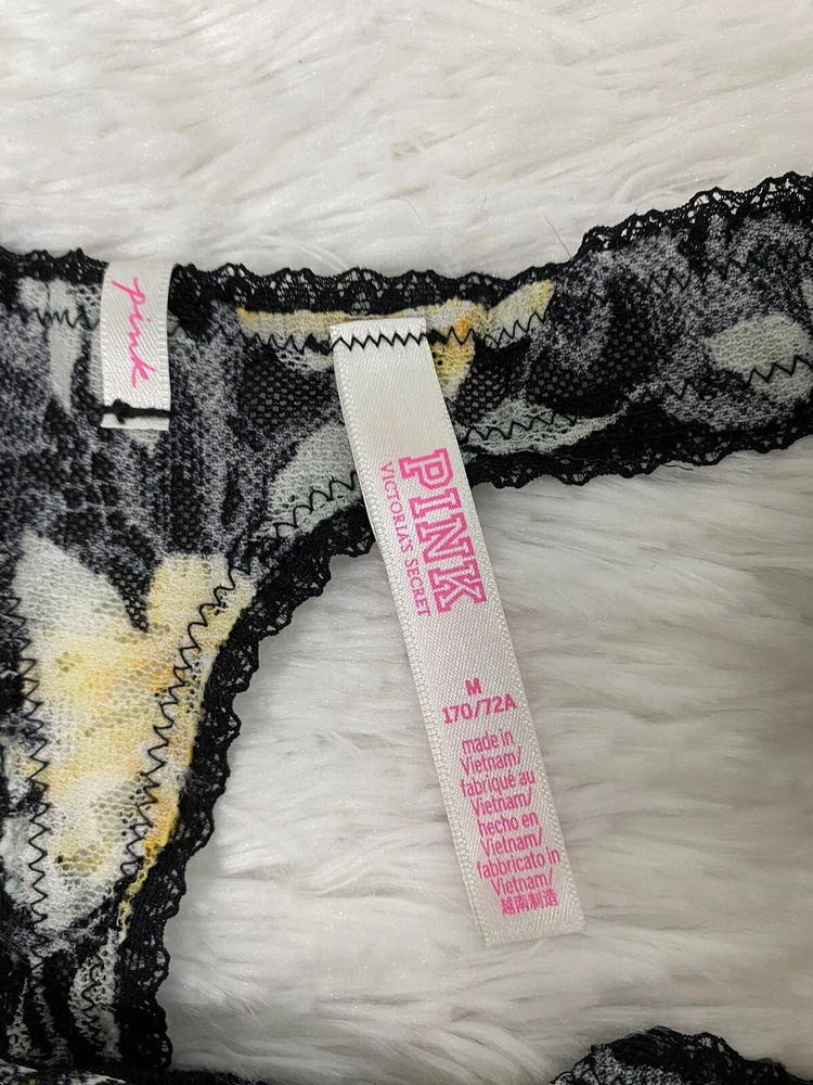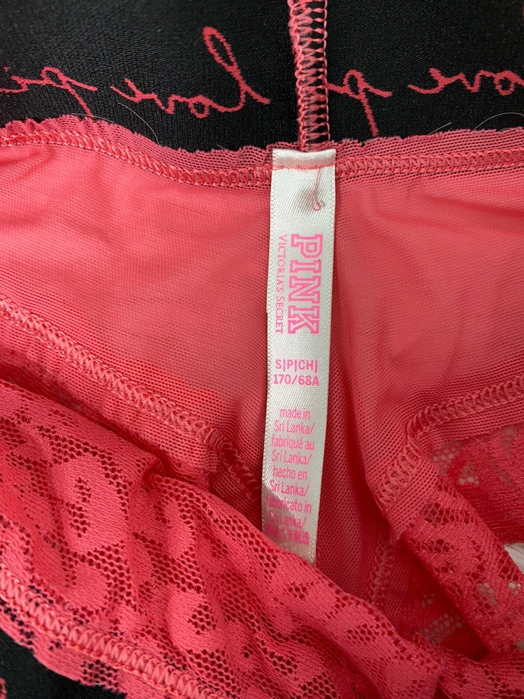 Size Type: Regular Features: Breathable, Lightweight, Stretch Brand: PINK Pattern: Floral Rise: Low Style: Strappy thong UPC: Does not apply Opacity: Semi-Transparent Accents: N/A Color: Pink Country/Region of Manufacture: Sri Lanka Size: S Modified Item: No Theme: Angel, Beach, Birthday, City, Classic, N/A Seller Notes: “see pictures” gtin13: Does not apply Material: Polyamide Blend, polyester & elastine Character: N/A Garment Care: Machine Washable Department: Women Type: Panties Fabric Type: Lace Vintage: No Compression Area: Waist