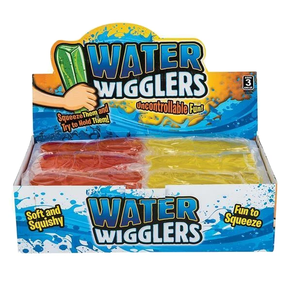 - You will receive 2 Glow In The Dark Water Wigglies - Novelty Toy / Stress Toy / Squeeze Toy / Fidget Toy - You will receive 2 Wigglies, colors picked at random 4.75" glow water wiggler Uncontrollable slippery fun! Soft and Squishy Fun To Squeeze Variety of colors Light activated glow Great for entertaining Squeeze Them And Try To Hold On Perfect game prize or goody bag giveaway Adults And Kids Love These! Ages 3+
