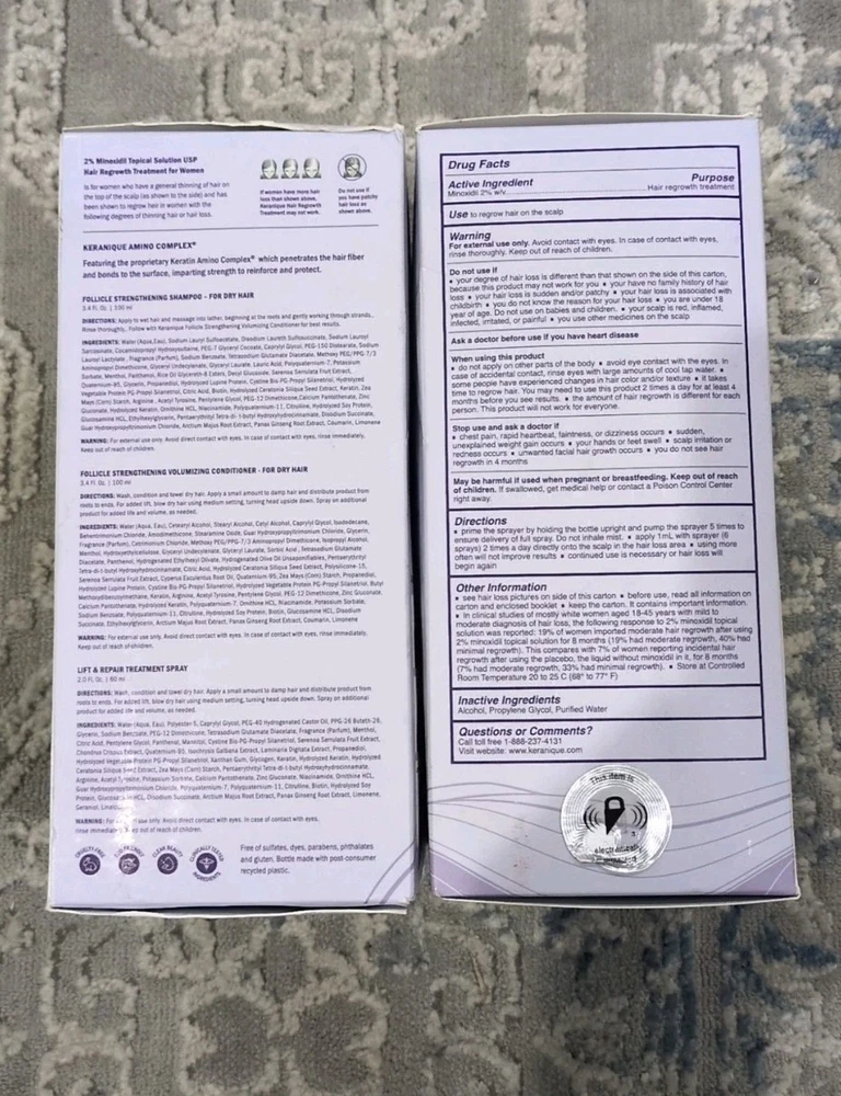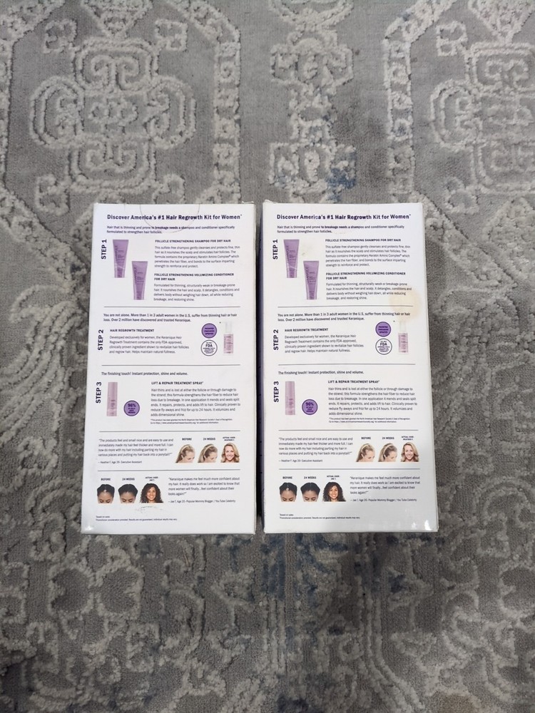 2 PK New Keranique Hair Regrowth System Kit System Deep Hydration Thickens.