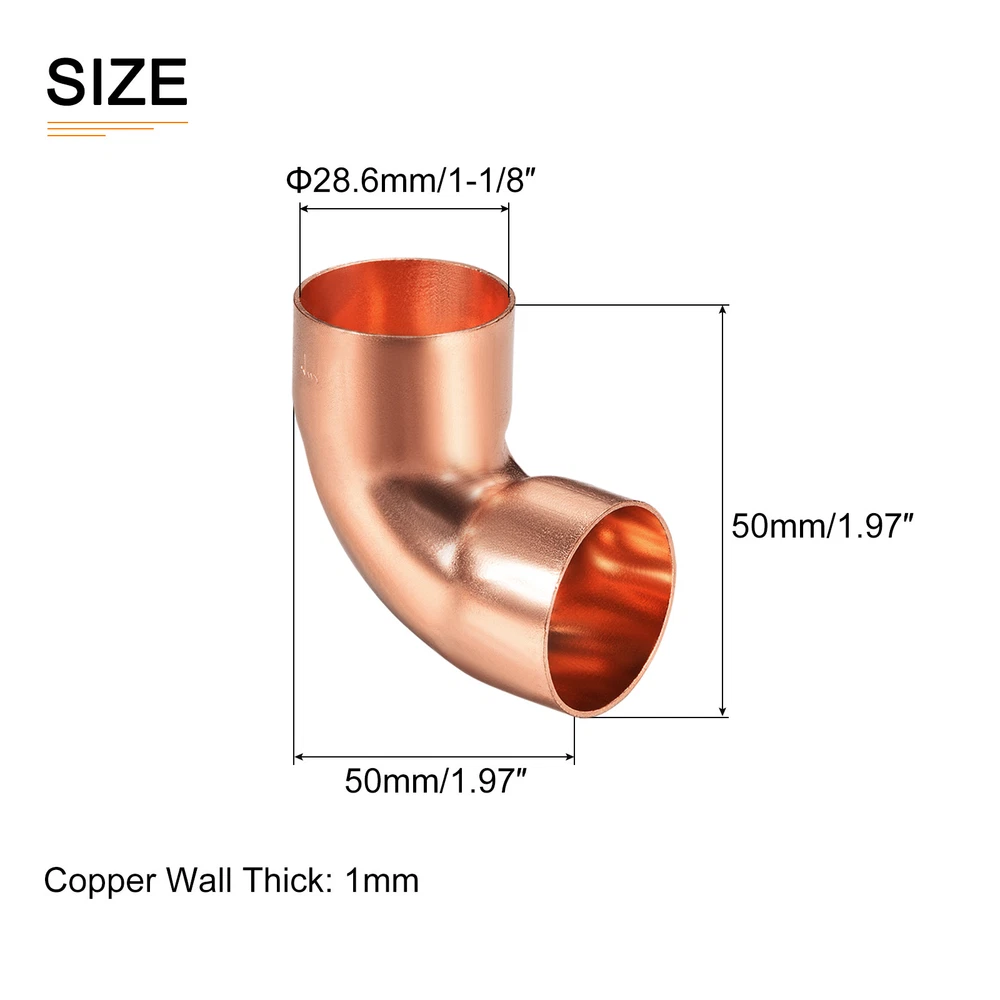 Document Product Details: Color: Copper ToneMaterial: CopperCopper Wall Thick: 1mmCopper Fitting Diameter / Inner Diameter: 28.6mm/ (1-1/8-inch) Total Size: 50 x 50 x 31mm / 1.97" x 1.97" x 1.22" (L x W x H)Package Content: 2 x Elbow Pipe FittingMaterial - Constructed with copper material, it is wear-resistant, anti-corrosion, and rust-proof, which has good toughness and high impact strength. With a high-gloss surface, no deformation or fading.Feature- This 90-degree pipe fitting is specially designed to build a connection between pipes to transform the direction of water flow. Can be for a range of different pipe connections.Application - Elbow pipe fitting for use in water pipe systems, water heater applications, marine repair, remodeling a home, or plumbing a system, DIY plumbing, and more. Suitable for use indoors or outdoors.Install Steps - Just insert the pipe deep into the elbow fitting and lock the pipes, without any soldering or glue. And they can be disassembled and assembled. 2 Pack 1-1/8"(Inner Dia) 90 Degree Copper Pipe Fitting Elbow Adapter Copper Tone Product Details: Color: Copper Tone Material: Copper Copper Wall Thick: 1mm Copper Fitting Diameter / Inner Diameter: 28.6mm/ (1-1/8-inch) Total Size: 50 x 50 x 31mm / 1.97" x 1.97" x 1.22" (L x W x H) Package Content: 2 x Elbow Pipe Fitting Material - Constructed with copper material, it is wear-resistant, anti-corrosion, and rust-proof, which has good toughness and high impact strength. With a high-gloss surface, no deformation or fading. Feature- This 90-degree pipe fitting is specially designed to build a connection between pipes to transform the direction of water flow. Can be for a range of different pipe connections. Application - Elbow pipe fitting for use in water pipe systems, water heater applications, marine repair, remodeling a home, or plumbing a system, DIY plumbing, and more. Suitable for use indoors or outdoors. Install Steps - Just insert the pipe deep into the elbow fitting and lock the pipes, without any soldering or glue. And they can be disassembled and assembled. Hot Item Payment 1.We accept eBay payment . 2.Payment must be received within 7 business days of auction closing. Shipping 1.We ship to your eBay or Paypal address. Please make sure your eBay and Paypal address is correct before you pay. 2.Items will be shipped within 1-3 business day when we received payment. 3.Delivery time depends on destination and other factors. Description Policy 2 Pack 1-1/8"(Inner Dia) 90 Degree Copper Pipe Fitting Elbow Adapter Copper Tone Product Details: Color: Copper Tone Material: Copper Copper Wall Thick: 1mm Copper Fitting Diameter / Inner Diameter: 28.6mm/ (1-1/8-inch) Total Size: 50 x 50 x 31mm / 1.97" x 1.97" x 1.22" (L x W x H) Package Content: 2 x Elbow Pipe Fitting Material - Constructed with copper material, it is wear-resistant, anti-corrosion, and rust-proof, which has good toughness and high impact strength. With a high-gloss surface, no deformation or fading. Feature- This 90-degree pipe fitting is specially designed to build a connection between pipes to transform the direction of water flow. Can be for a range of different pipe connections. Application - Elbow pipe fitting for use in water pipe systems, water heater applications, marine repair, remodeling a home, or plumbing a system, DIY plumbing, and more. Suitable for use indoors or outdoors. Install Steps - Just insert the pipe deep into the elbow fitting and lock the pipes, without any soldering or glue. And they can be disassembled and assembled. Hot Item Payment 1.We accept eBay payment . 2.Payment must be received within 7 business days of auction closing. Shipping 1.We ship to your eBay or Paypal address. Please make sure your eBay and Paypal address is correct before you pay. 2.Items will be shipped within 1-3 business day when we received payment. 3.Delivery time depends on destination and other factors.