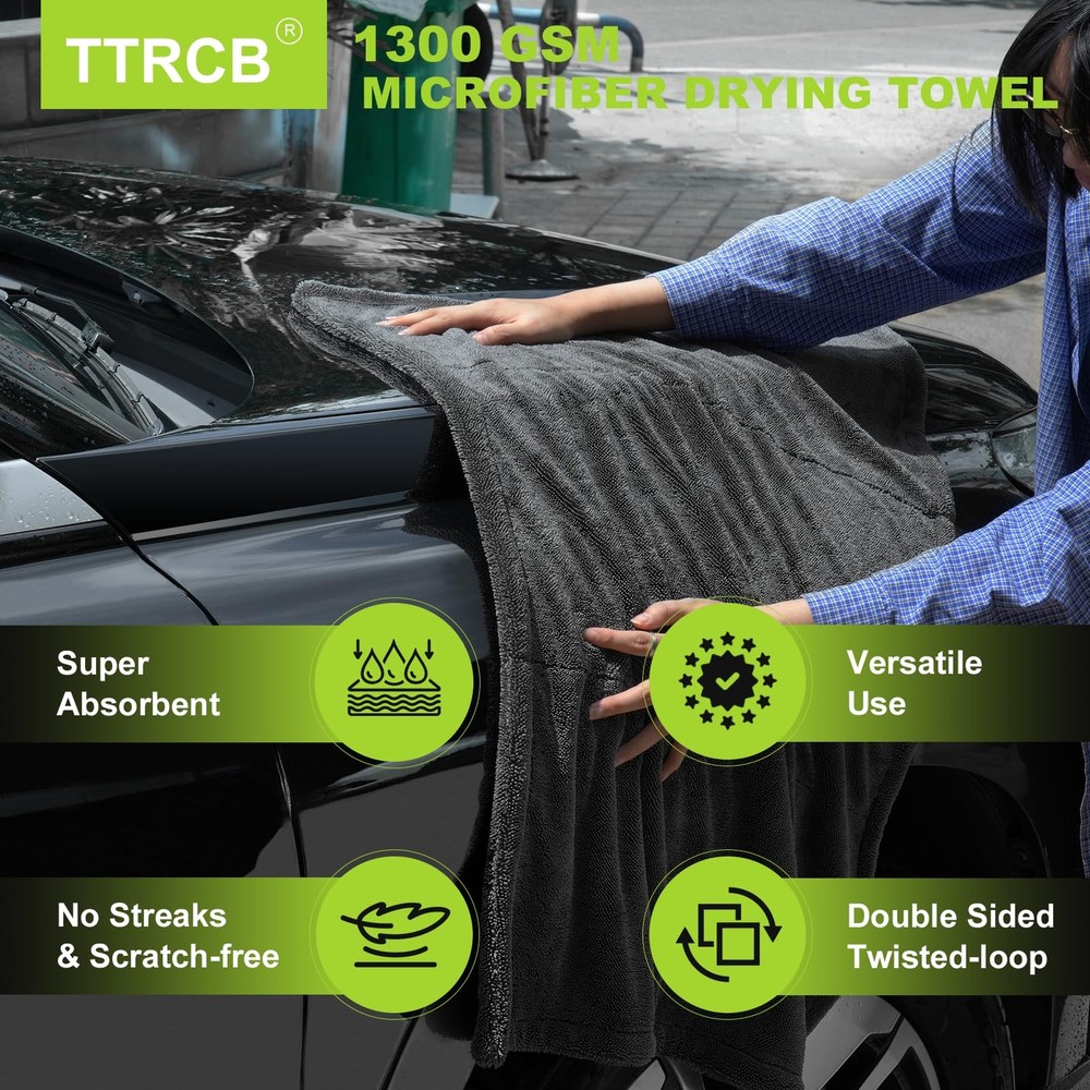 1 COMPLETE CAR WASH KIT - This car cleaning kit includes a 24" x 36" microfiber towel for the entire car body and a 16"x16" microfiber cleaning cloth perfect for windows, mirrors. The car wash mitt for wheel, rim, wing mirrors and many other awkward angles around the car. The car detailing brush perfect for car interior, the comprehensive car detailing kit ensures effective and thorough car cleaning for both exterior and interior without any scratches, lints, and streaks leaving behind PREMIUM TWISTED LOOP MICROFIBER - Made with ultra-soft 1300GSM microfiber, our drying towels car detailing provides superior water absorption, dry your entire car or truck in just one stroke with this microfiber drying towel. Ensuring a streak-free finish and ultimate drying performance for all vehicles SUPER ABSORBENT & VERSATILE - This car towels drying are designed to be soft yet highly effective. The edgeless design and premium microfiber ensure a smooth, scratch-free clean on all paint finishes. The 1300 GSM microfiber towels for cars has ultra-absorbent, absorbs over 6 times more than other towels. The large size and advanced microfiber design make it ideal for drying large vehicles like SUVs and cars DURABLE & EASY TO CLEAN - Machine washable and built to last, these microfiber cleaning cloth are perfect for regular use. They’re suitable for low-temperature drying, ensuring they remain in top condition for hundreds of washes. These durable microfiber towels for cars simplify your cleaning routine and quickly dry for repeated use, making them an excellent choice for busy households and auto enthusiasts GENTLE YET EFFECTIVE HAND CAR WASH MITT - The car cleaning mitt with double sided high density & soft microfiber chenille noodles holds 7x its weight in soapy water, allowing you to softly yet quickly cover large surfaces. They mould well to the shape of the hands, enabling easier reach to every little spot like rims, air vents. Elastic wrist cuff helps keep mitt in place on hand