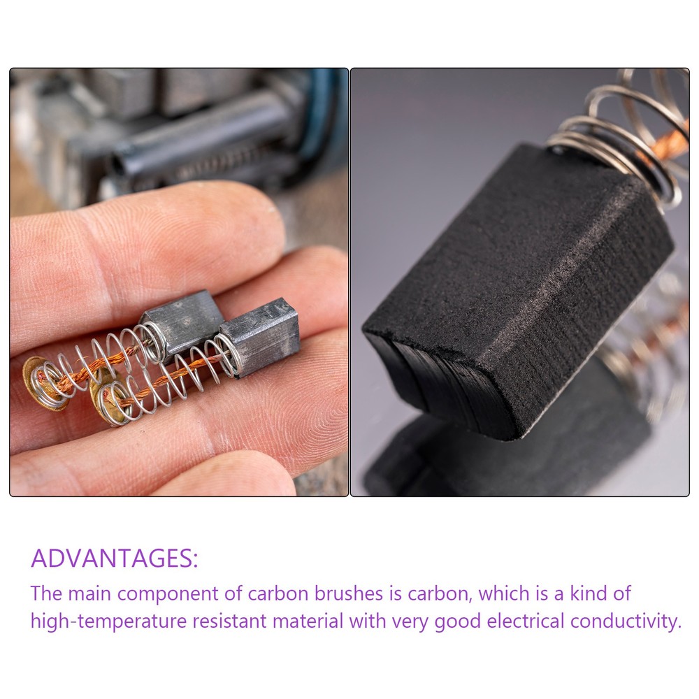 Document APPLICATION: Carbon brushes are also called electric brushes. They are widely used to transmit signals or energy in the fixed part and rotating part of some motors or generators.ADVANTAGES:1. The main component of carbon brushes is carbon, which is a kind of high-temperature resistant material with very good electrical conductivity.2. They are widely used in electrical tools and equipment such as circular saws.PACKAGE CONTENT:Carbon Brush Size (LxWxH) : 14mmx8mmx5mm/0.55x0.31x0.2 inch2 pack of Motor Carbon BrushNOTE: Please check the size before ordering. 2 Pack 14mmx8mmx5mm Carbon Brushes for Electric Motor APPLICATION : Carbon brushes are also called electric brushes. They are widely used to transmit signals or energy in the fixed part and rotating part of some motors or generators. ADVANTAGES : 1. The main component of carbon brushes is carbon, which is a kind of high-temperature resistant material with very good electrical conductivity. 2. They are widely used in electrical tools and equipment such as circular saws. PACKAGE CONTENT: Carbon Brush Size (LxWxH) : 14mmx8mmx5mm/0.55x0.31x0.2 inch 2 pack of Motor Carbon Brush NOTE : Please check the size before ordering. Hot Item Payment 1.We accept eBay payment . 2.Payment must be received within 7 business days of auction closing. Shipping 1.We ship to your eBay or Paypal address. Please make sure your eBay and Paypal address is correct before you pay. 2.Items will be shipped within 1-3 business day when we received payment. 3.Delivery time depends on destination and other factors. Description Policy 2 Pack 14mmx8mmx5mm Carbon Brushes for Electric Motor APPLICATION : Carbon brushes are also called electric brushes. They are widely used to transmit signals or energy in the fixed part and rotating part of some motors or generators. ADVANTAGES : 1. The main component of carbon brushes is carbon, which is a kind of high-temperature resistant material with very good electrical conductivity. 2. They are widely used in electrical tools and equipment such as circular saws. PACKAGE CONTENT: Carbon Brush Size (LxWxH) : 14mmx8mmx5mm/0.55x0.31x0.2 inch 2 pack of Motor Carbon Brush NOTE : Please check the size before ordering. Hot Item Payment 1.We accept eBay payment . 2.Payment must be received within 7 business days of auction closing. Shipping 1.We ship to your eBay or Paypal address. Please make sure your eBay and Paypal address is correct before you pay. 2.Items will be shipped within 1-3 business day when we received payment. 3.Delivery time depends on destination and other factors.
