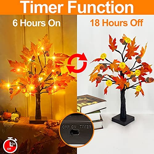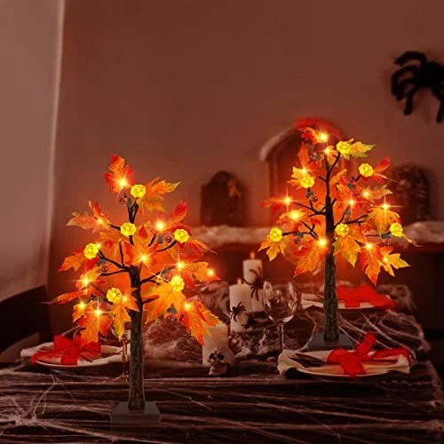 2 Pack 20 Inch Prelit Fall Maple Tree with Timer for Thanksgiving Decor