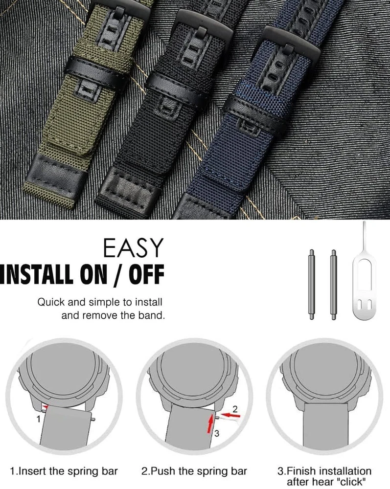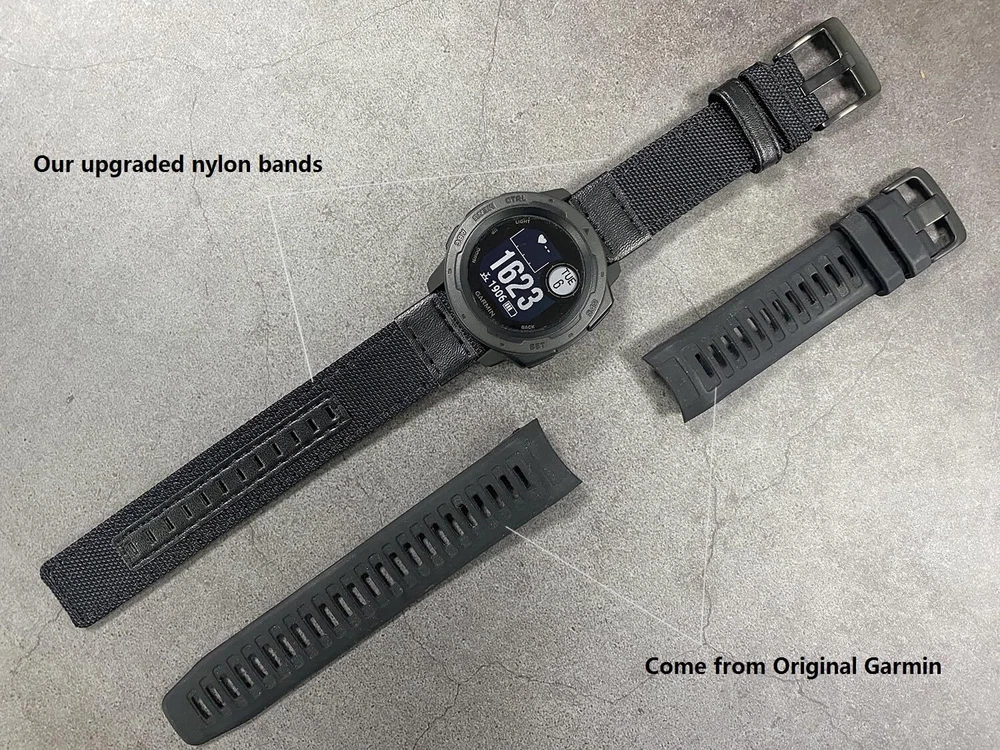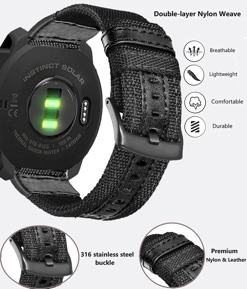 ⌚【Compatible Models】22mm Sport Nylon bands Compatible with Garmin Instinct / Garmin Instinct Tactical / Instinct Tide / Instinct Esports/ Instinct Solar, Instinct 2 / Instinct 2 Solar / Instinct 2 Surf / Instinct 2 Tactical (NOT included Instinct 2S) Smartwatch! It doesn't fit other models, please check your watch model before order. Wrist Size: M/L size fit: 6.12"-9.4"(150mm-240mm) ⌚【Durable Instinct Watch Bands】Premium Garmin Instinct nylon watch strap is made of high-quality durable fabric breathable nylon canvas, sweat-resistant, without skin irritation. Classic colors and integrate with premium leather to change the style of your Garmin Instinct 2 Tactical. Suitable for daily work and exercise, air holes design make it lightweight and breathable, adding a touch of bright color to physical training. ⌚【Upscale Black Metal Buckle 】Bands of Garmin Instinct’s buckles are made of 316L stainless steel with double electroplating process. Hard-wearing than other buckle. ⌚【Easy Installtion / Remove】Came with Tool-Pin, Garmin Instinct Tactical elastics band can be installed onto Garmin Instinct Watch Lugs (not included) on both ends. Secure enough to avoid the falling off. Easy and simple installation or removal. ⌚【Perfect Gift】Instinct Solar bracelet women men is suitable as a special gift for family and friends for birthdays, Christmas, Valentine's Day, Farther's Day, Mother’s Day, Thanksgiving Day, or holidays. Sweet daily gifts can accompany them every day. Any issues, please contact on your Amazon order page, then click "Contact Seller" we take care of all quality-related issues solve.