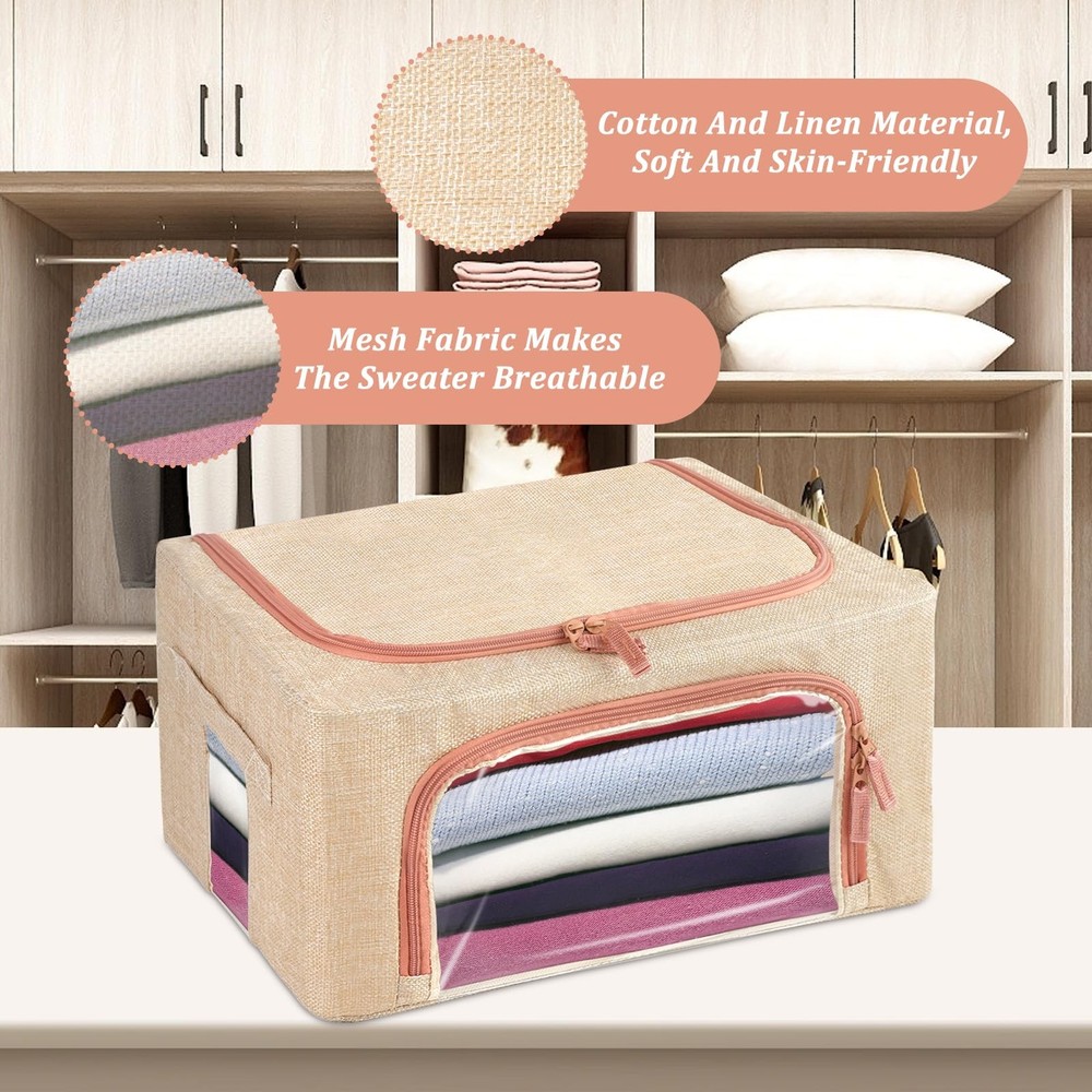 Features: The Cashmere Sweater Storage Bag with Natural Cedar Ball is designed to keep your woolen and cashmere sweaters safe and fresh. Featuring breathable fabric, mesh windows, it protects against damage while keeping clothes smelling great. Its durable, wear-resistant design ensures long-lasting use, and the steel frame provides support without deformation. Measuring 15.4 x 11.4 x 7.9 inches, it fits perfectly in closets or shelves and can be easily folded flat when not in use. Specifications: Material: Cotton-Linen Color: Beige Size: 15.4 x 11.4 x 7.9 inches Package includes: 2 × Cashmere Sweater Storage Bag 24 × Natural Cedar Ball Notes: For manual measurement, please allow slight errors in size. The color may have a slight difference due to different screen displays. Breathable Natural Fabric: Crafted from premium cotton-linen fabric, the cashmere sweater storage bag with natural cedar balls is durable, wear-resistant, and breathable. The breathable cashmere protection ensures your wool sweaters, scarves, pants, and other garments dry, and safe during seasonal storage. Spacious Design with Transparent Window: Measuring 15.4 x 11.4 x 7.9 inches, these cashmere storage bags are roomy enough to hold multiple sweaters. The sweater storage bag’s transparent window allows for easy identification of contents without the need to open and search. Foldable and Space-Saving: Designed with an internal metal frame, these breathable & washable cotton bags can be folded flat when not in use, optimizing closet space. These pouch wool cotton sweater storage bags are also stackable, helping you save even more room. Includes Cedar Balls: Each sweater storage set includes 24 0.87-inch natural cedar balls that emit a refreshing scent. The cashmere sweater storage bag with a natural cedar ball will naturally protect your valuable garments from damage and contamination. Versatile Storage Solution: These breathable cashmere sweater storage bags are ideal for storing cashmere, Merino wool, or wool scarves. Their lightweight design makes them perfect for everyday use, travel, or moving. The cashmere bag also makes a thoughtful and practical gift for moms or grandmothers.