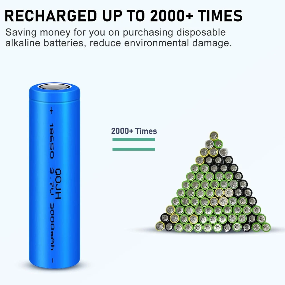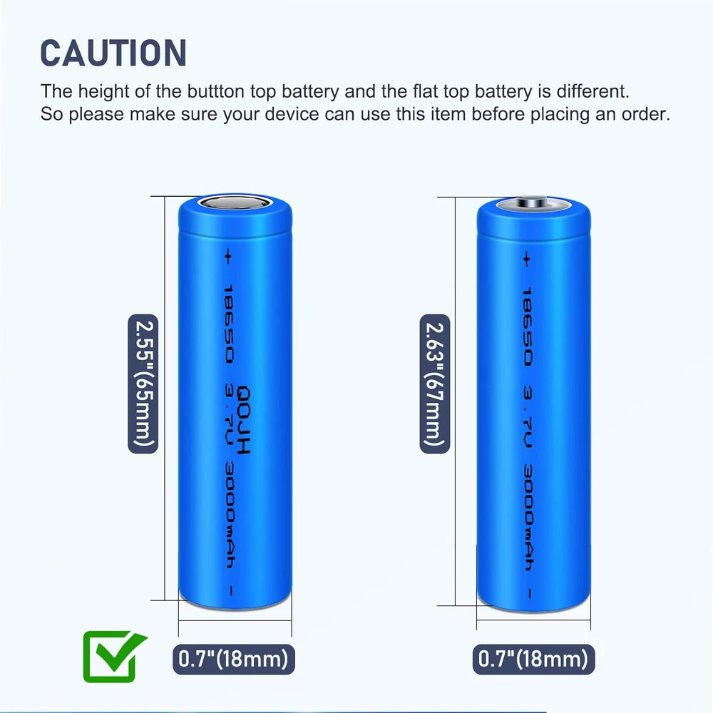 2 Pack 3.7 Volt 18650 Rechargeable Battery, 3000Mah Battery Flat Top Lithium Bat