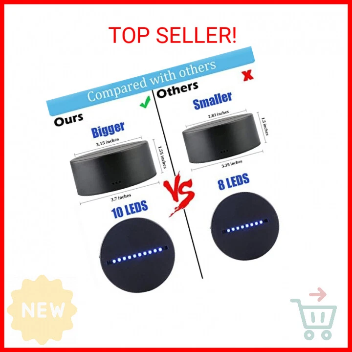 100% Genuine Free Shipping Gift Cards WELCOME TO THE SHOP 2 Pack 3D Led Night Light Lamp Base, Includes Remote Control, Blank Acrylic and Charger Cable, Adjustable 7 Colors Lights Base - Each light base has 10 LED beads, works with a acrylic pattern plate for showing colorful light - Come with IR remotes, which allows for convenient operation about dimming and ON/OFF - 10 LED beds, 16 static color light and 4 lighting modes to choose such as flash, strobe, fade, smooth - The LED base operated by 3 x AAA batteries or USB Charger Cable, which can be replaced easily - Lights base worked perfectly for your projects, display your DIY acrylic plate Payments We accept the following payment methods PayPal Please pay as soon as possible after winning an auction, this will allow for quicker shipping times! Returns We accept returns. You can return unopened items in the original packaging within 30 days of your purchase with receipt or proof of purchase. If 30 days or more have passed since your purchase, we cannot offer you a refund or an exchange. Upon receipt of the returned item, we will fully examine it and notify you via email, within a reasonable period of time, whether you are entitled to a return. If you are entitled to a return, we will refund your purchase price and a credit will automatically be applied to your original method of payment. Only regular priced items may be refunded. Sale items are non-refundable. Shipping Shipment processing time All orders are processed within 2-3 business days. Orders are not shipped or delivered on weekends or holidays. If we are experiencing a high volume of orders, shipments may be delayed by a few days. Please allow additional days in transit for delivery. If there will be a significant delay in shipment of your order, we will contact you via email or telephone. Shipping rates & delivery estimates Shipping charges for your order will be calculated and displayed at checkout.