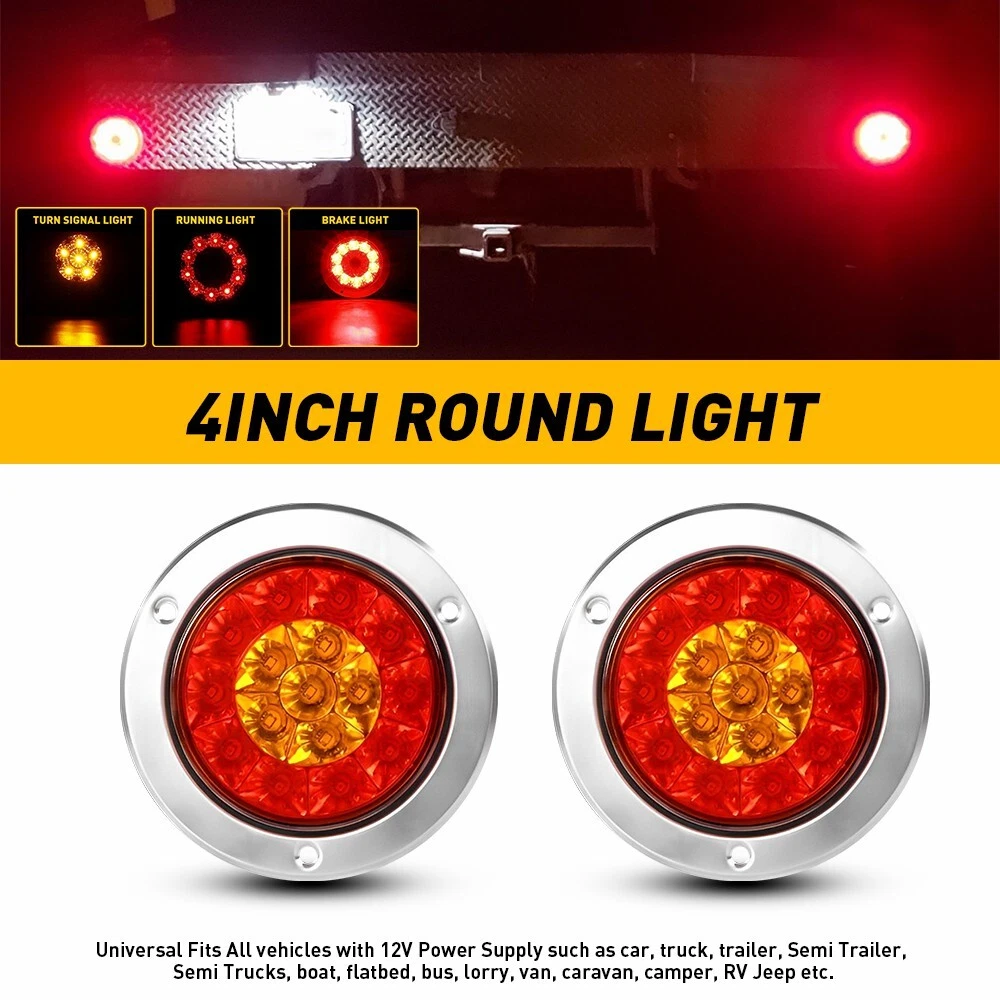 2 PCS Red/Amber Round tail 16LED Stop Brake Turn Signal Lights Truck Trailer Specification: Material: ABS & Rubber Voltage:12V-24V Waterproof grade:IP67 Service life: 50000H+ Light color: Red(10 leds),amber(6 leds) LED quantity: 16 LEDs per unit Universal for: Trucks, trailers, tractors, semi-trailer, Dump Truck, bus, boat, special vehicle, and etc. Features: 2 PCS 4 Inch Chrome Round Red 16LED Amber Turn LED Stop Brake Trailer Tail Light 2 PCS Red/Amber Round tail 16LED Stop Brake Turn Signal Lights Truck Trailer Specification: Material: ABS & Rubber Voltage:12V-24V Waterproof grade:IP67 Service life: 50000H+ Light color: Red(10 leds),amber(6 leds) LED quantity: 16 LEDs per unit Universal for: Trucks, trailers, tractors, semi-trailer, Dump Truck, bus, boat, special vehicle, and etc. Features: High brightness: Adopts 16 pieces of advanced LED lamp beads glowing brightly but not dazzlingly. 100% Brighter than halogen bulbs but more Energy-saving. Waterproof: The tail light is highly silicon sealed with an IP67 waterproof rating, which works even under extreme conditions such as rain and snow. Easy to install: Easy installation with direct replacement, other modifications are not required. Connection Black wire connects to negative. Red wire:Braking light (Red light with high brightness) Blue wire:Driving light(Red light with low brightness) Yellow wire: Turn signal light(Amber light) Functions Tail Light, Running Light, Stop Light, Turn Signal Light, etc. Wide application: Universal Fits All vehicles with 12V Power Supply such as car, truck, trailer, Semi Trailer, Semi Trucks, boat, flatbed, bus, lorry, van, caravan, camper, RV Jeep etc. Note: Please check the detail information carefully before purchasing. Your satisfaction is our utmost concern, please feel free to contact us for any questions and concerns. Store Service?? All our product share 2-years warrantys. If incorrect or defective item when you receive it, please feel free to contact us via eBay message. We will pay return shipping fee and arrange replacement ASAP. We are a professional shop. We devote ourselves to offering best product and good service.Any problem, complaint or suggestion happened during transaction, please contact us before leaving any feedback. We are committed to resolve all issues in a friendly and satisfactory manner. If you have any questions, please contact us, we will solve the problem for you within two working days Thank you! Item Specifics Brand : Unbranded Number of Bulbs : 2 Placement on Vehicle : Rear Lens Color : Smoke/Tinted Features : DOT-Certified, SAE-Certified Housing Color : Black Type : Tail Light Assembly Manufacturer Part Number : XPD-WDZ-49444 Packaging include : 2X Tail Lights Voltage : 12 V Fitment : Universal Universal Fitment : No Manufacturer Warranty : 2 Years Finish : Textured Payment (1) Instant PayPal payment is the preferred method of payment. (2) We also accept payment via PayPal, DebitCard, Visa, MasterCard, Discover. (3) We will only ship to the confirmed PayPal shipping address given with the payment. (4) If you want to ship to other address, please change your PayPal shipping address before you make payment. (5) To avoid initiating an unpaid item claim, please pay within 7 days. Shipping (1) We will ship your item(s) within 24 hours. (2) We ship this item to US usually via USPS first class mail. It usually takes 3-6 working days to deliver. Returns (1) We offer free return & money back guarantee. If you are not satisfied with your purchase for any reasons, you can return the item for refund or replacement/exchange. All returns must include the original packaging. (Please refer to our return policy for details.) (2) If you don't return goods within 60 days from date of purchase, your right to cancel will be revoked. Any items damaged because of incorrect installation will not be refunded. Please contact us for return or troubleshooting help prior to returning any products. (3) Unauthorized reselling of AUXITO products is strictly prohibited and we can't honor the warranty if purchasing from the unauthorized reseller. Contact Us [Our office hours are MONDAY - Saturday 9:00PM - 6:00PM PST, but we will response you once we get your message .There will be some delay on respons if you send message or E-Mail on Sundy.] (1).Negative feedback will not help resolve any problems you have, please contact us via eBay messages before leaving negative feedback, our customer service will make best effort to help you with the issues. (2).We maintain high standards of excellenceand strive for 100% customer satisfaction! Feedback is very important to us. We request that you contact us immediately BEFORE you give us neutral or negative feedback, so that we can satisfactorily address your concerns. FAQ Why swith to LED? LEDs not only give your vehicle a clean, modern look but, with proper use, will outlast any halogen bulb and HID bulb! Low energy draw, high lumen output, and instant on/off LED technology out shines stock bulbs in every way. Which bulbs are used in my vehicle? Check Sylvania automotive lamp replacemnt guide, you can select the year, make, and model of your vehicle, then select the application you want to replace or upgrade from stock. What does CAN Bus mean? CAN Bus means Controller Area Network Bus. This system monitors your vehicle and reports operating conditions. CAN Bus systems are commonly found in European vehicles such as BMW, Audi, Mercedes, Volkswagen, Porsche, and in many American vehicles. While most late model American vehicles have CAN Bus systems, it is always good to check with your vehicle dealer to see which system your vehicle has before purchasing electrical products. When do you need Warning Canceller? Some vehicles with cmplex internal computers(such as Audi,BMW,Jaguar,Mercedes,etc.) might report on-dash errors or flickering on the headlights. The warning canceller fixes the dashboard warning and flickering effect. Bulb Out Dashboard Error: On some vehic
