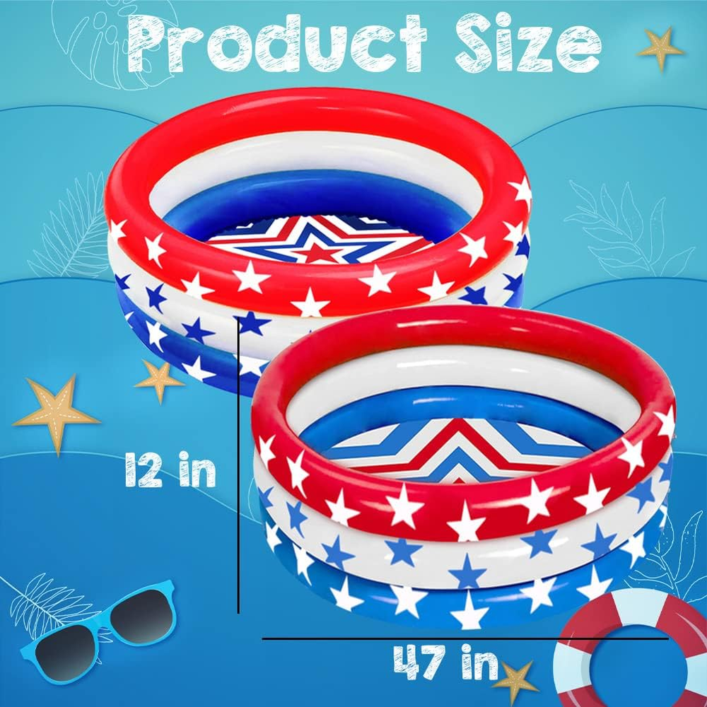 2 Pack Inflatable Kiddie Pool, 47.5"x12" Inflatable Swimming Pool for Kids Summer Fun, Inflatable Baby Ball Pit Pool for Indoor Outdoor Water Fun Swimming Pool Center Super Value Pack: The inflatable kiddie pool set comes with 2 pack unique designs of American flag pattern, measuring 47.5 inches in diameter and 12 inches in height. It is eye-catching in your backyard and on the beach. Premium Material: This inflatable pool uses high quality which is safe material and Non-toxic. Our toddler pool is thicker than common products in the market and can better resist punctures. It is easy to use and keeps the fun going. 3 Rings Safe Pool: The kids inflatable pool has 3 independent air rings, each with double-layer valves to prevent air leakage. You can use the pool's integrated drain valve for drainage after use, and the kids pool can be easily dismantled and stored to save space. Water Fun and Cool Summer: The inflatable pool is perfect for your kid who loves to play in the water. Let the kid enjoy water fun and cool off in the coming summer with this blow up pool. Multi-Functions: The inflatable swimming pools can use as a baby ball pool, toys pool, dog pool, pet house, kids fishing pond, baby bathtub, summer water party decoration. Perfect for party decoration or celebration, relaxation, summer fun events, swimming pool party or summer beach getaway. 2 Pack Inflatable Kiddie Pool, 47.5"x12" Inflatable Swimming Pool for Kids Summer Fun, Inflatable Baby Ball Pit Pool for Indoor Outdoor Water Fun Swimming Pool Center Included Components 2 Inflatable Kiddie Pools Assembly Required Yes Color Multicolor Special Feature Inflatable Material Vinyl Country of Origin China Occupancy 1 Item Weight 4.18 pounds Shape Round Age Range (Description) Kid Target Audience Unisex-Kids Product Dimensions 47.5"L x 47.5"W x 12"H Size 47.5" x 47.5" x 12" 47.5 "h x 47.5 "h x 12.0 "h. Weight: 4.18 lb Shipping from the USA All of our products are shipped from the USA, ensuring quick delivery to your destination. Payment We offer the following payment methods: PayPal, credit card, bank transfer, and eBay's secure payment system. Free Shipping & Free Returns Shipping within the USA is FREE. Additionally, any return is absolutely free for you. Risk-Free Purchase You have the option to return an item within 30 days without any justification. We cover the return shipping costs! Fast Shipping We ship immediately upon receipt of payment. Generally, the package is delivered within 2-3 days in the USA. If it takes longer, we will contact you. Quality and Costs Made in Europe, USA, China No customs fees or additional charges Total satisfaction guarantee Invoice with declared VAT available upon request in .pdf format Feedback Your feedback is very important to us. After you pay for your purchase, you will automatically receive positive feedback from us.