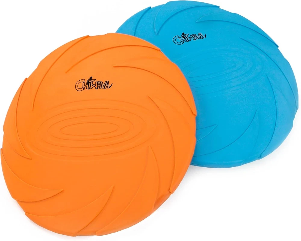 Made of Natural Rubber, Non-toxic,Touch Soft.(2PCS/Set,5.9″, 1*blue+1*orange). This Flying Disc providing a safe and help to clean teeth and gums. Interactive flyer is the perfect toy in the water, grass or snow. You even can flip it over and use it as a travel pet bowl for food or water. Lightweight are great for tossing, throwing and fetching. Appealing to your pet’s natural instincts and extra excitement. Suitable for Small Dogs – Less than 11kg(24.25lb). Easy to clean. Product Description Product Features Touch Soft, Chew Fetch Toy Use it as a travel pet bowl Easy to Wipe Clean 2 Pack 5.9" Rubber Dog Flying Disc for Small Dogs Interactive and Fetch Play for Small Dogs Chiwava Fly disc are made from natural rubber, NON-TOXIC. Soft, flexible and easy grip. can help clean teeth and massage gums.Made for small dogs,Great for long distance flight and fetch games. A good tool for indoor or outdoor training, suitable for parks, beaches and backyards. you can even turn it over and use it as a travel pet bowl for food or water. promoting healthy exercise and bonding time. release energy and stress. Dogs Should be Supervised While Playing with Toys Damaged Toys Should be Taken Away Strong Chewing Dogs Should be Teach Care Toys