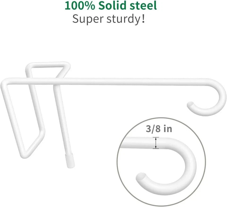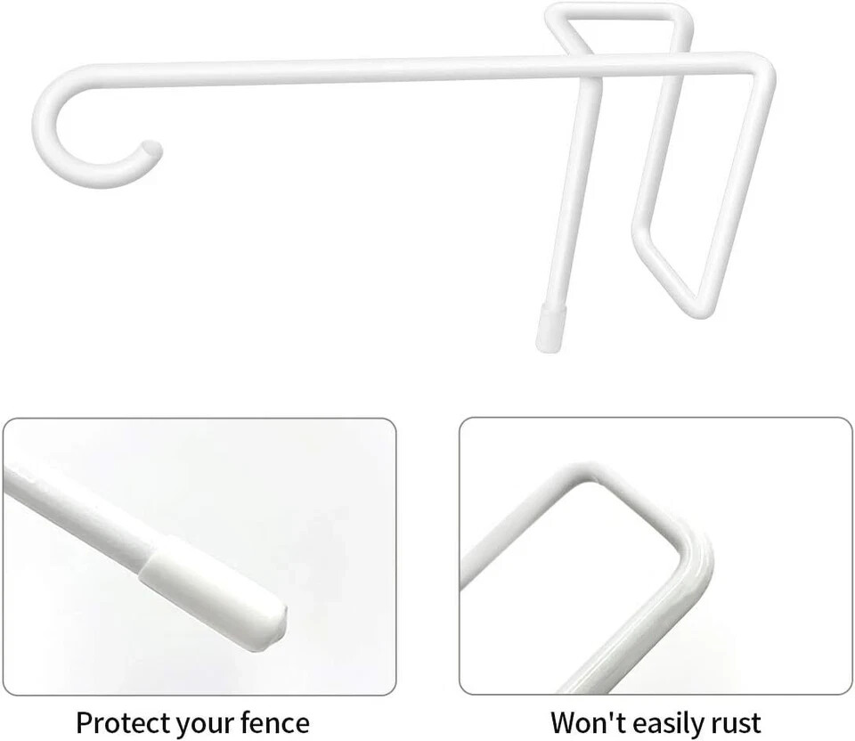 SIZE - Our white fence hooks measures 10 inches in length, 5 inches in height and manufactured from 3/8” mild steel rod, could fit any 2” fence rail securely and hold round or square shape hanging planter up to 12” in diameter QUALITY - With durable rust resistant electro statically powder coated, our patio hooks are designed to be used for a long time. Allowing you to hang all types of decorations and equipment large or small without damaging your PVC fence USES - It is designed to suspend any object like plant basket, string lighting, wind chimes, bird feeders, pool equipment, outdoor lights, vinyl fences, alumawood lattice, solid patios and so much more. INSTALL - Easy to use, no drill or screw needed, just need to hang and remove, a simple and effective solution to make your garden tidy. Blends in nicely with the fence to place the focal point on the hanging plants.