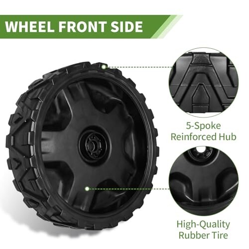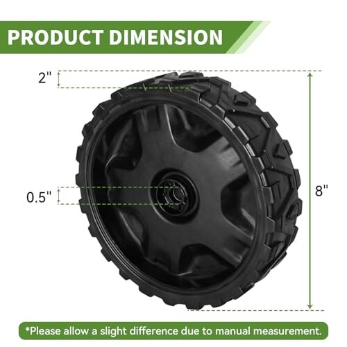 8-Inch Drive Wheels for Self-Propelled Push Mowers and Chipper Shredders Application: Enhance the mobility of your equipment with these 8-inch diameter drive wheels, ideal for 21" self-propelled push mowers and chipper shredders with a 24" vacuum width. Ensure a smoother movement for your machinery. Replace Part Number: Compatible with part number 634-05040. Verify with your original part number before ordering to ensure compatibility. Compatible Models: Craftsman: M210(2019), M215(2019), M230(2019), 247.374410, 247.377440 Cub Cadet: SC 300 HW, SC 300, SC 300 IP, SC 300 E, SC 700 Brute: 12A-A06M078, 12A-A06N778, 12A-A0A9778 Other Brands: Columbia, Yard Man, Black Max, MTD Gold, etc. Please refer to the description for additional compatible models. Easy to Install: Follow these simple steps to replace your mower wheels: Pry off the wheel cover using a flathead screwdriver. Loosen the mounting nut with a 9/16 inch socket and remove the old wheel. Slide the new wheel onto the axle, rethread and tighten the mounting nut. Align and snap the wheel cover back into place. Package Includes: Two Wheel Assemblies with a diameter of 8 inches each.