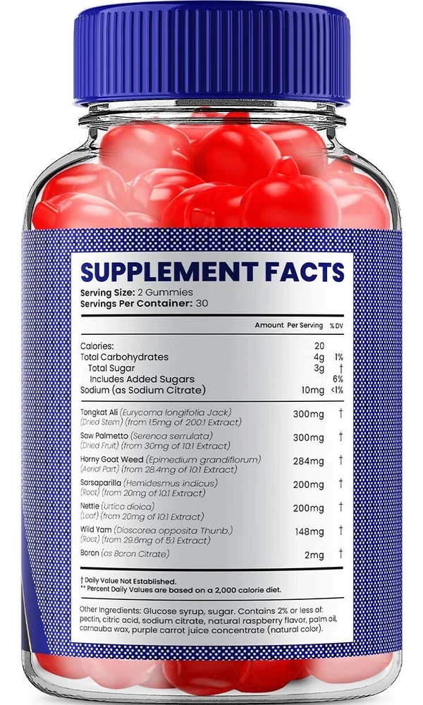 Country/Region of Manufacture: United States Flavor: Rapsberry Brand: Alpha Pro Force Formulation: Gummy Ingredients: Boron, Sarsaparilla (Smilax Ornata), Saw Palmetto, Stinging Nettle (Urtica Dioica), Tongkat Ali (Eurycoma longifolia), Wild Yam (Dioscorea villosa) Department: Adult, Men gtin13: 612461297280 Features: All Natural UPC: 612461297280 Main Purpose: Men's Health