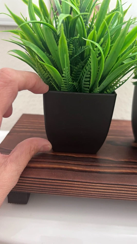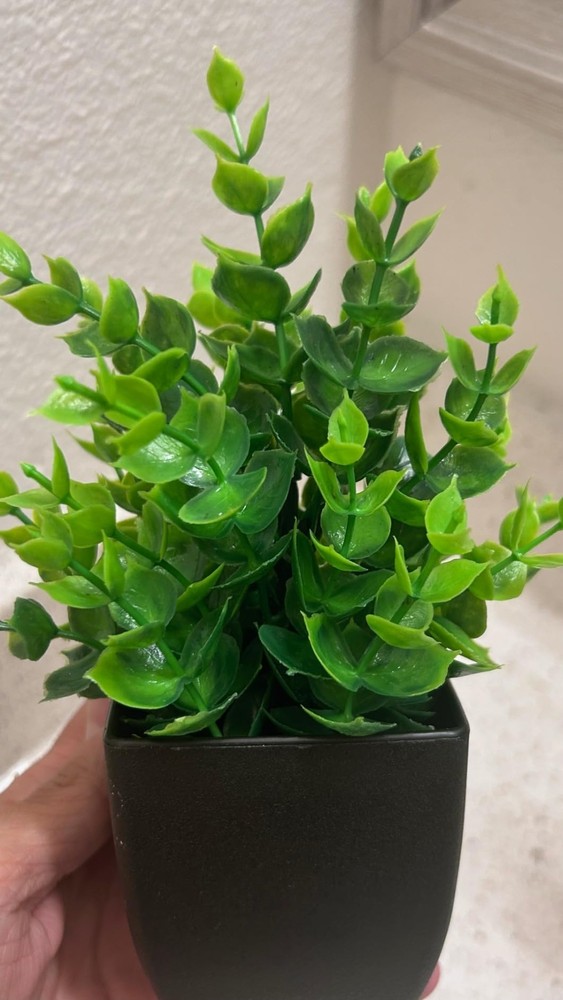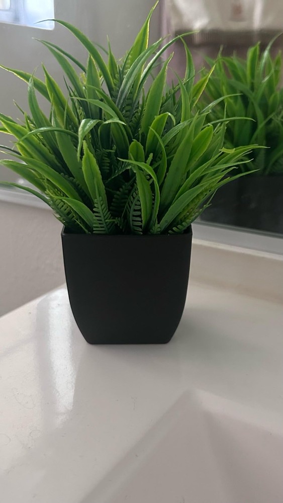 1. These artificial potted plants are an absolute gem! They look incredibly realistic with their detailed textures and vibrant colors, instantly brightening up any space. The sleek black pots add a modern touch, blending seamlessly into home or office decor. Best of all, they require zero maintenance—no watering or sunlight needed! Perfect for anyone who wants greenery without the hassle. Highly recommend for adding a fresh, lifelike vibe effortlessly.