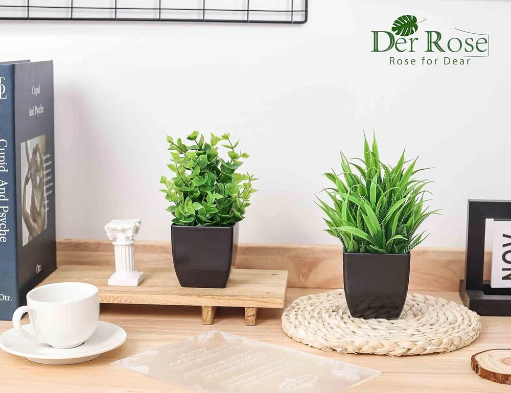 Quantity & Dimension: This pack includes two small artificial plants, each measuring 7.1 inches in height and 4.7 inches in width, elegantly housed in sleek black pots that complement any decor style. Material of Fake Plants: Crafted from high-quality plastic, these faux plants require no water or sunlight, ensuring they remain vibrant and lush throughout the year, making them the perfect low-maintenance addition to your space. Realistic Design: The intricate colors and textures of these indoor faux plants are designed to mimic the appearance of real greenery, creating a refreshing and natural ambiance in any space, whether at home or in the office. Versatile Decoration: Ideal for a variety of settings, these artificial plants can enhance the decor of your bathroom, office, bedroom, kitchen, or any other area in your home, adding a touch of elegance and warmth wherever they are placed. Adjustable Features: The leaves of these mini plants can be easily adjusted to achieve your desired shape, allowing for personalized styling to suit your decor preferences and ensuring they fit perfectly in any arrangement. Product Description Bring a touch of nature indoors with the Artificial Potted Plants – a perfect addition to your home or office decor. This set of two faux greenery pieces provides a hassle-free way to enjoy the beauty of plants without the maintenance. Whether you’re looking to brighten up your workspace or add a cozy feel to your living space, these realistic-looking plants are an excellent choice. Their compact size makes them versatile for placement on desks, shelves, or countertops, instantly enhancing the aesthetic of any room. In addition to their decorative appeal, these artificial plants are designed for durability and longevity. Made from high-quality materials, they are dust-resistant, fade-resistant, and UV-resistant, ensuring they look fresh and vibrant all year round. With their easy-to-adjust leaves, you can customize their appearance to suit your style, making them a delightful and practical addition to your decor. Best Features Includes two small faux plants for versatile decorating options. Crafted from durable plastic, ensuring no need for watering or sunlight. Realistic design mimics the look of natural greenery. Perfect for various indoor settings, including bathrooms, offices, and bedrooms. Adjustable leaves allow for customization to fit your decor style.