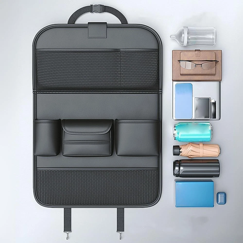 2 Pack Leather Car Backseat Organizer with Foldable Table Tray, Black Product Details Specific Uses For Product: Automobiles Material: Faux Leather Special Feature: Foldable Color: Black Brand: Primst Finish Type: Polished Product Dimensions: 2.6"D x 18"W x 25"H Number of Compartments: 6 Shape: Rectangular Number of Items: 2 Manufacturer: Primst Item Weight: 5.06 pounds Finish: Polished Special Features: Foldable Batteries Included?: No Batteries Required?: No Specific Uses For Product: Automobiles Material: Faux Leather Special Feature: Foldable Color: Black Brand: Primst Finish Type: Polished Product Dimensions: 2.6"D x 18"W x 25"H Number of Compartments: 6 Shape: Rectangular Number of Items: 2 Mounting TypeItem Weight: Insert Mount2.3 Kilograms Material: Made of waterproof leather to protect the seat back, scratch and wear resistant, waterproof and durable, beautiful and shiny, protect your car seat back from dust, wear and kicked dirt Foldable table design: The car seat organizer device adopts foldable table design, two storage forms, in the folded state, does not occupy the car space. In the open state can be used as a car folding table, you can also put mobile phones, PADs, etc. A foldable rear back of seat car organizer for your dining and entertainment needs Multiple Storage: The seat back organizer device is optimized for the partition storage of commonly used items in automobiles. Make our storage more convenient and neat, and make it truly the car organizer back seat device you need Easy to Clean: This car back seat organizer is easy to clean, just wipe it with a damp towel, it can easily clean all the dirty footprints. Protect your seat from kick marks, dirt, spills and scratches Quick installation: It takes less than a minute to install the organizer, just buckle the headrest straps and insert the buckles on both sides under the seat. At the same time, it is universal, whether you are a car, SUV, or other vehicle, it can meet your needs