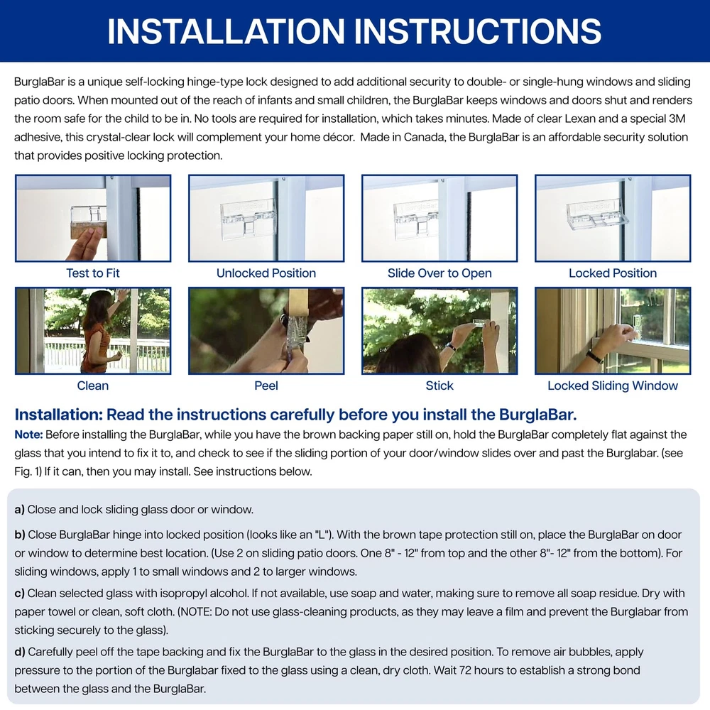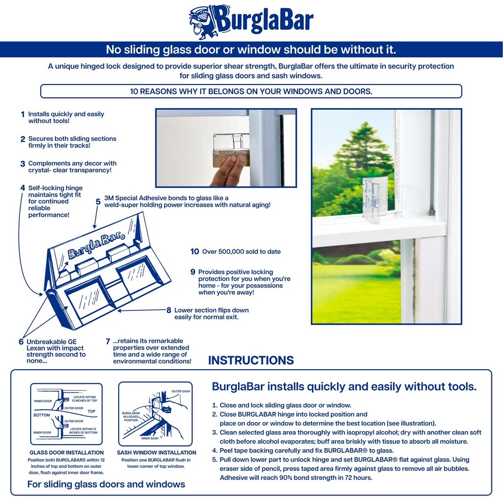 2 Pack for Sliding Door Locks for Sliding Glass Doors & Windows, Child Proof Enhance Your Home Security: Instantly add additional security to patio doors and windows with this unique hinge-style sliding glass door lock; Not only does this door security device keep your space safe, it can also be used to childproof your home Easy To Install: The patio door lock is simple to install - no tools required - and its crystal-clear design easily blends in; This versatile child-proof door lock can be used as a sliding door security bar or a sliding window lock Adjusts To Your Door: Our sliding glass door security bar can easily be adjusted to fit different doors sizes; Secure your home with a security bar for sliding glass doors and windows and enjoy added peace of mind Sturdy & Reliable: These durable security door locks come equipped with strong adhesive that adheres to glass like a weld for maximum strength; When properly applied, our sliding door and window security bars provide additional safety and security 20 Years of Experience: The creators of the original Addalock and , Rishon Enterprises Inc. is dedicated to promoting safety, security, and privacy; Protect your spaces, whether at home or away, with our safety locks for doors Shipping We offer FREE shipping on all orders! We ship within Three business days of payment, usually sooner. We use a selection of shipping services such as UPS, FedEx, USPS etc. We only ship to the lower 48 states, no APO/FPO addresses or PO Boxes allowed. Local pickups and combined shipping options are not provided at this time. Return You can return a product for up to 30 days from the date you purchased it. Any product you return must be in the same condition you received it and in the original packaging. Please keep the receipt. Payment We accept payment by any of the following methods: PayPal Please pay as soon as possible after winning an auction, as that will allow us to post your item to you sooner! Feedback Customer satisfaction is very important to us. If you have any problem with your order, please contact us and we will do our best to make you satisfied. Contact Us If you have any queries, please contact us via ebay. We usually respond within 24 hours on weekdays. Please visit our eBay store to check out other items for sale! Thank you for shopping at our store.