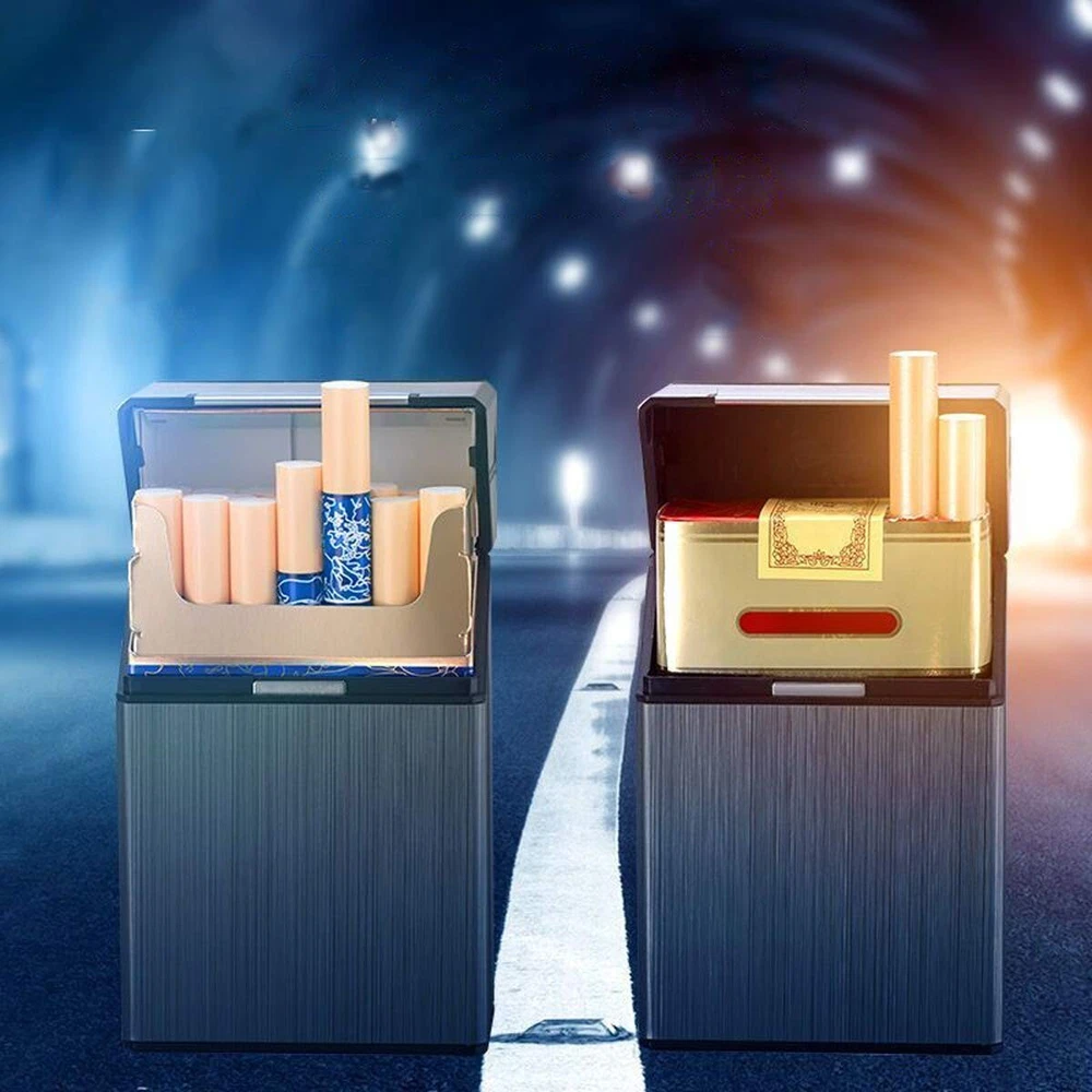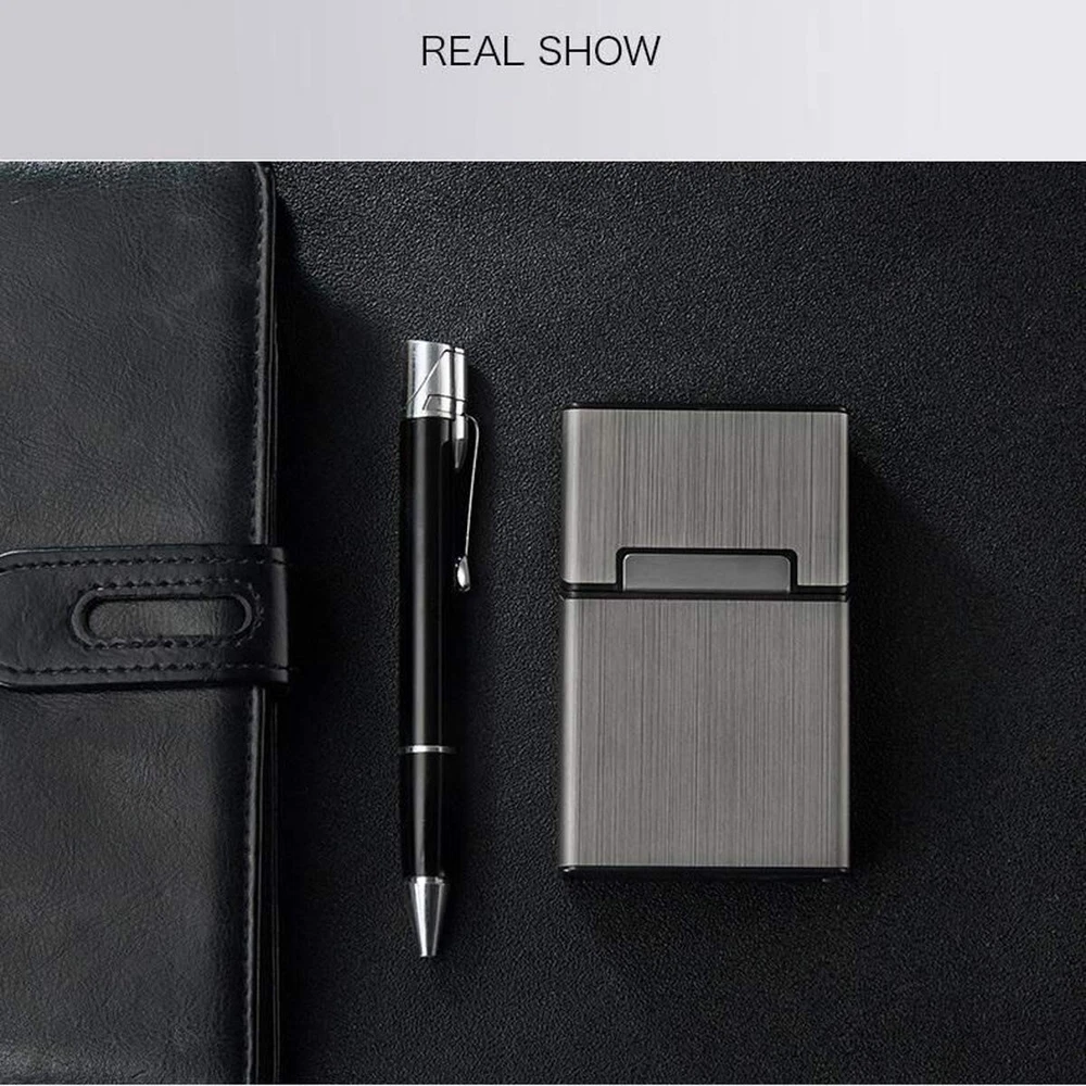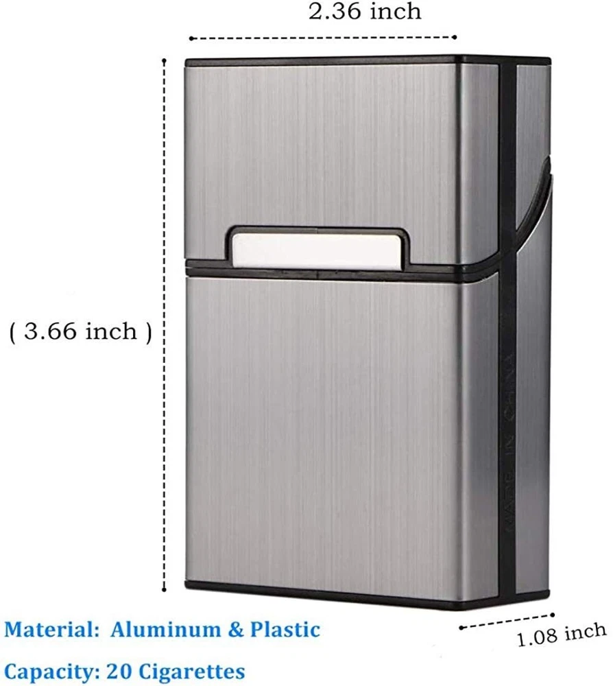 Cigarette Case Brushed Metal Cigarette Case with Magnetic Switch Flip Closure,20 Capacity (2 Pack) Size: 85mm Material Plastic Color Gray + Silver Product Dimensions 1.08"D x 2.36"W x 3.66"H Closure Type Buckle,Button,Flip,Magnetic About this item ▶【EASY TO USE】: You can easily put the whole pack of cigarettes with a length oof 85 mm / 3.35 inch into the metal cigarette case together with the original cigarette case. it's not need to put cigarettes one by one like others, it is very comfortable in use. ▶【 MAGNETIC BUTTON DESIGN 】:Magnetic buckle design, very convenient for opening and closing the metal cigarette box and it protects the cigarettes from dropping out.and the cigarette case can be opened and closed with one hand. At the same time, the magnetic button has better sealing properties, which can effectively prevent the cigarette box from opening by itself and causing the cigarette to slip out or lose. ▶【COMPREHENSIVE PROTECTION】: Cigarette case made with aluminum, which is strong and light, anti extrusion, resistant to scratching and water, Keep cigarettes from moisture, protect your cigarettes always like new. ▶【FASHION ELEGANT】: This cigarette case is polished metal., so that it will not fade in color and brushed design make cigarette case looks elegant and beautiful, is the ideal gift for men or women. ▶【Widely Used】 : Suitable for different occasions and collocations. Whether work or vacation, indoor or outdoor, the exquisite and compact cigarette case can perfectly fit into each scene, greatly improving the quality of your life and making you the focus of everyone; Also can be a perfect gift for your families or friends.
